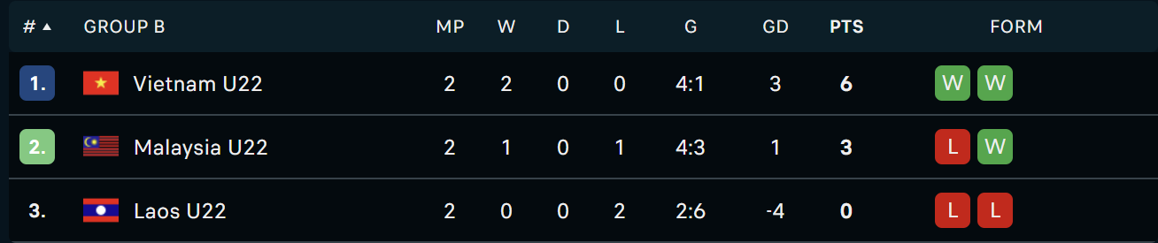 Khép lại trận đấu, U22 Việt Nam dễ dàng vượt qua U22 Malaysia với tỉ số 2-0 và góp mặt ở bán kết môn bóng đá nam Sea Games 33 với ngôi đầu bảng B.