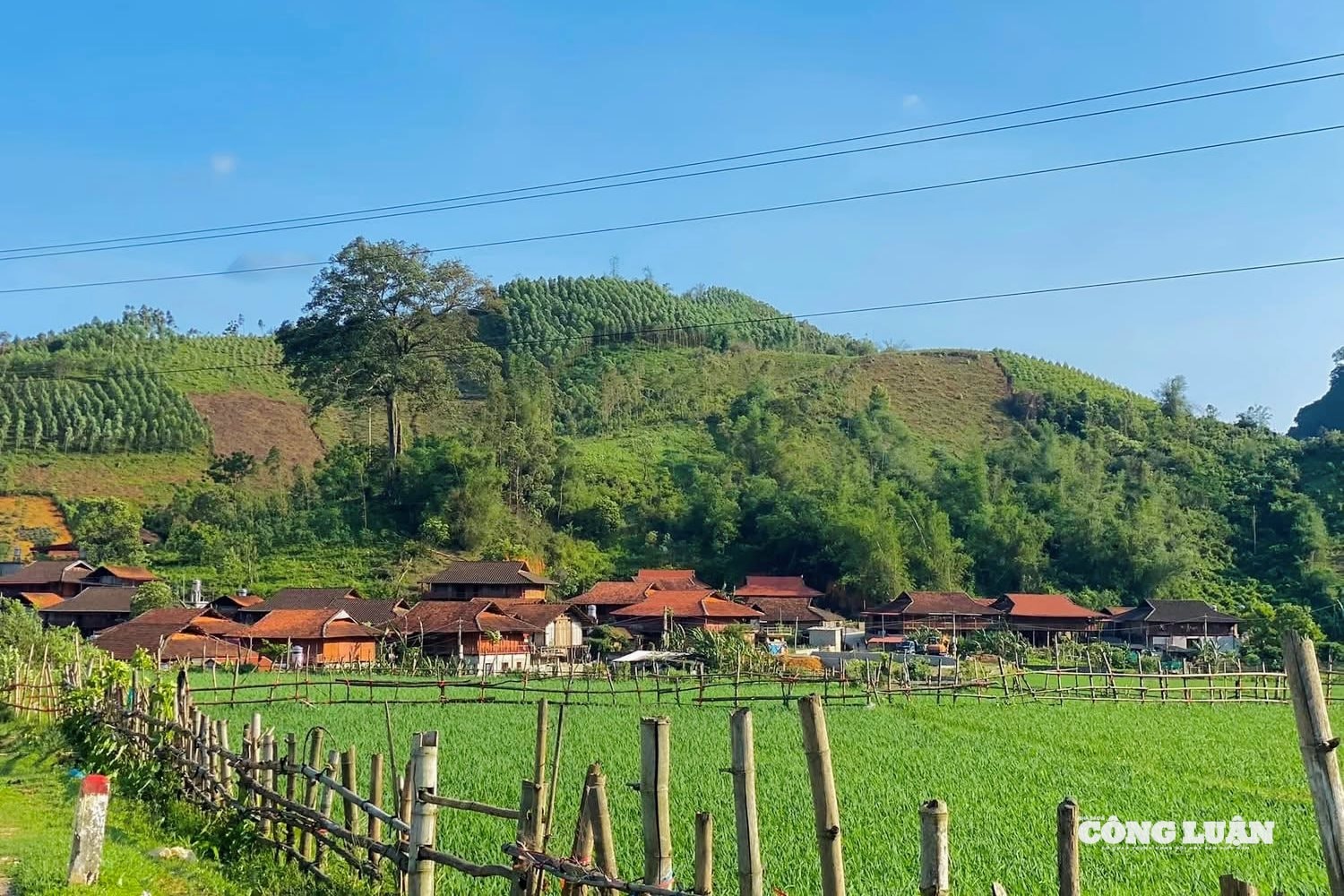 Thiên nhiên nơi đây không chỉ đẹp, mà còn hào phóng. Khi tiếp tục hành trình về bản làng, tôi dừng chân tại làng sinh thái cộng đồng Hữu Liên. Những ngôi nhà sàn mái ngói âm dương nép bên triền núi, những vườn rau xanh mướt, giàn bí rủ bóng, con đường đất nhỏ quanh co và nụ cười hiền hậu của bà con… tất cả hòa vào nhau, tạo thành một bức tranh bình yên hiếm thấy giữa nhịp sống hiện đại.