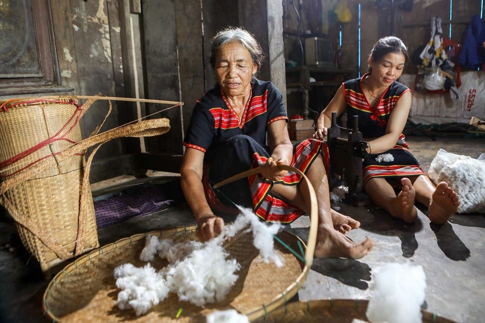 Bông vải được gieo trồng từ cuối tháng tư, thu hoạch vào đầu tháng 10, sau đó phơi khô, kéo sợi và nhuộm màu từ vỏ cây, quả rừng tự nhiên. Những sợi vải ấy được dệt trở thành váy, khố với hoa văn hình học độc đáo, phản ánh tư duy thẩm mỹ đặc sắc của đồng bào miền núi.