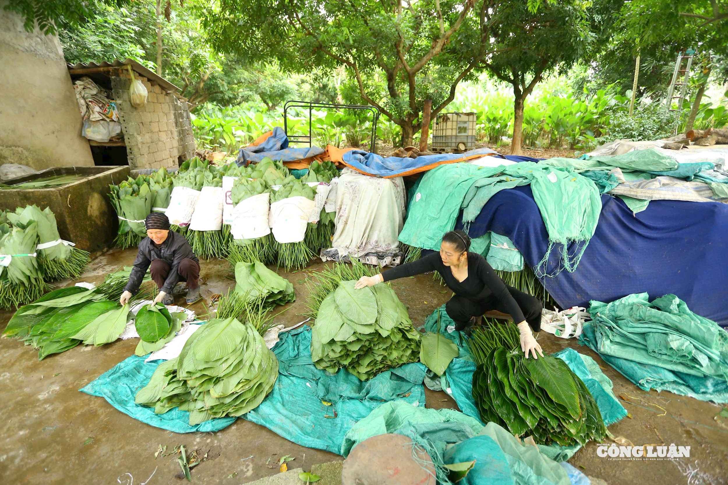 Làng Tràng Cát rộn ràng thu hoạch lá dong gói bánh chưng đón Tết 2026