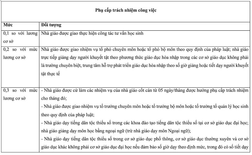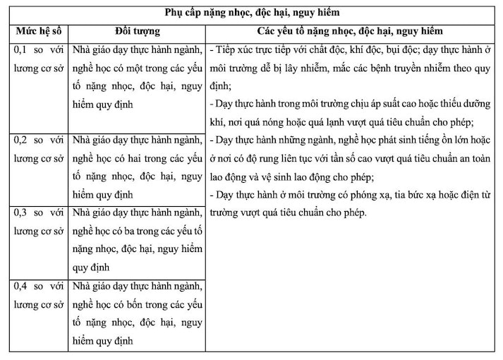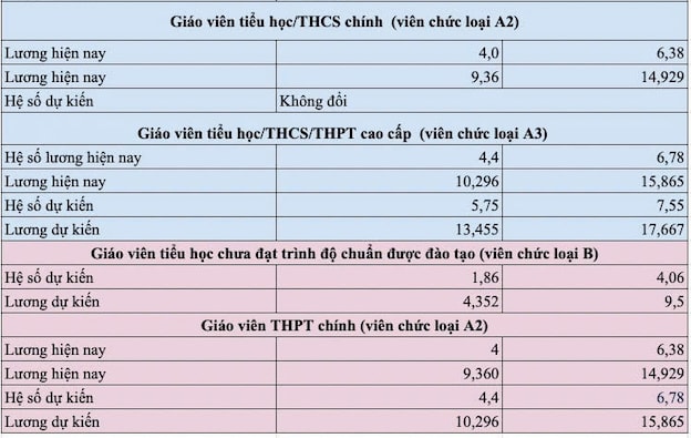 Dự thảo mới đưa ra thay đổi mạnh: Giáo viên mầm non: hệ số đặc thù 1,25; Giáo viên các cấp còn lại: hệ số đặc thù 1,15; Giáo viên vùng biên giới, dạy hòa nhập, trường khuyết tật được cộng thêm 0,05.