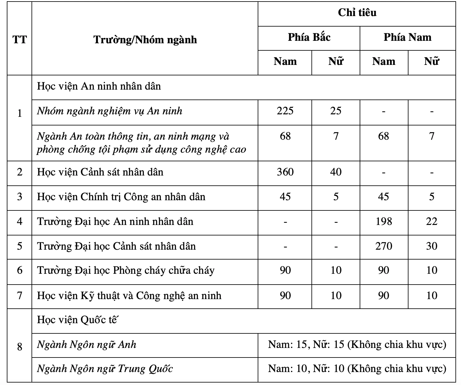 (CLO) 8 học viện, trường công an năm nay tuyển tổng cộng 2.070 sinh viên, giảm 280 chỉ tiêu so với năm 2025.