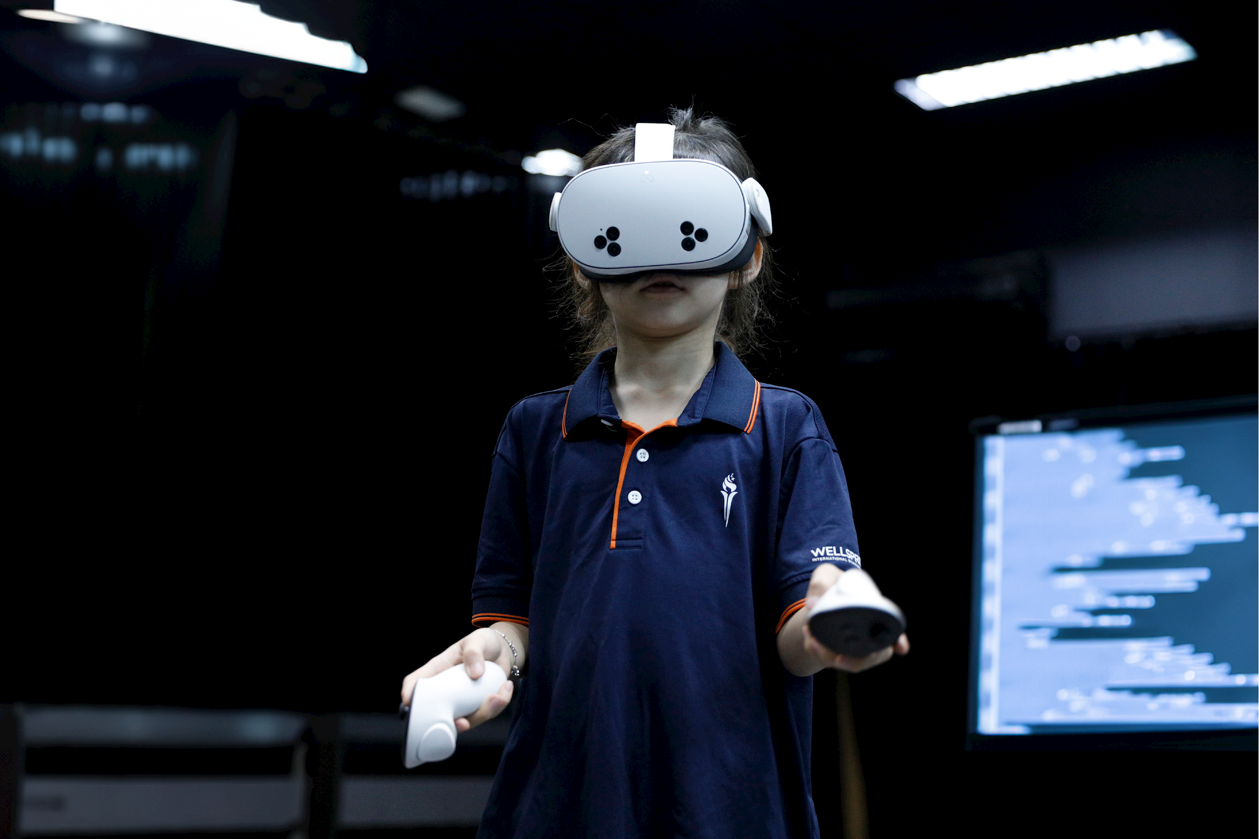 Học sinh tiếp xúc và học với công nghệ - kính VR. Ảnh: Wellspring