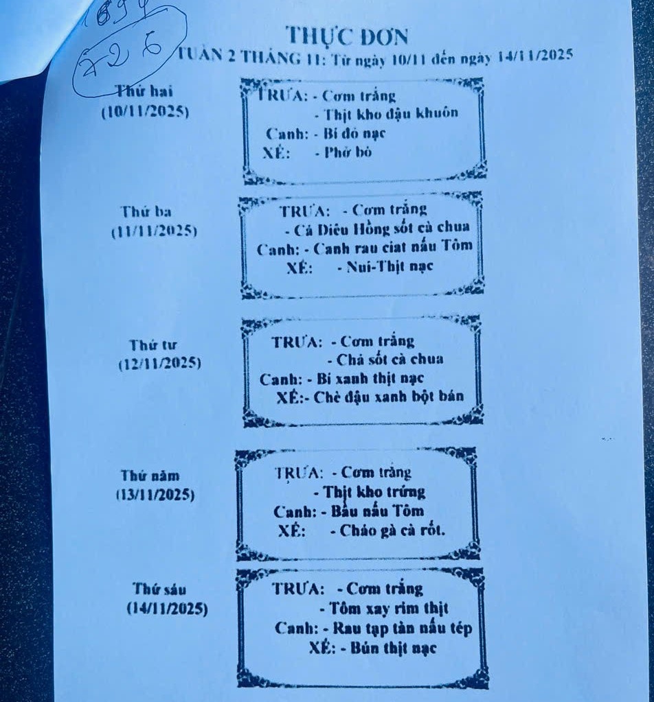 Thực đơn cả tuần của các học sinh tại Trường Mầm non 19/5 (ảnh T.H)