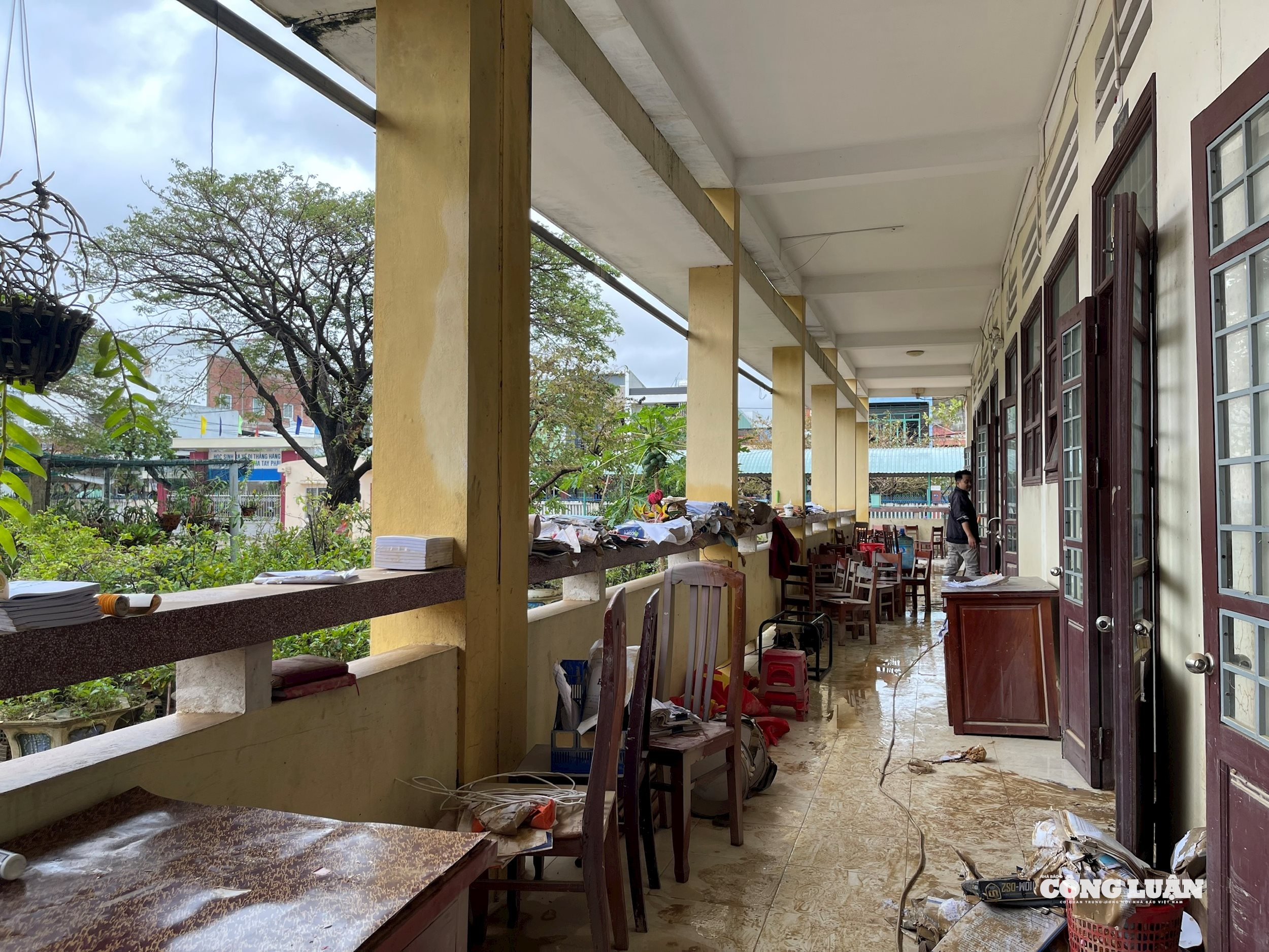Nước rút để lại một lớp bùn dày từ 10–20cm bám từ hành lang đến từng phòng học. Bàn ghế bị xô lệch, sách vở bết chặt, nhiều tủ đồ bị ngã đổ. Cứ mỗi phòng học mở ra là thêm một cảnh tượng ngổn ngang khác. Ngay cả đội ngũ giáo viên đã quen với việc vệ sinh trường lớp sau mưa bão cũng “choáng váng” trước mức độ tàn phá lần này”.