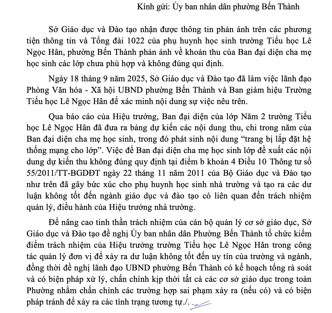 Hiệu trưởng bị đề nghị kiểm điểm vì để xảy ra khoản thu sai quy định