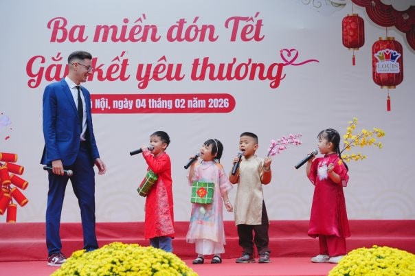 Chiều tối 4/2, khuôn viên Trường Mầm non Louis rộn ràng không khí xuân với nhiều hoạt động văn hóa, trải nghiệm dành cho học sinh và phụ huynh. Chương trình “Ba miền đón Tết, gắn kết yêu thương” được tổ chức nhằm mang đến cho các em một cái Tết ấm áp, đồng thời lan tỏa tinh thần sẻ chia, nhân ái trong cộng đồng.