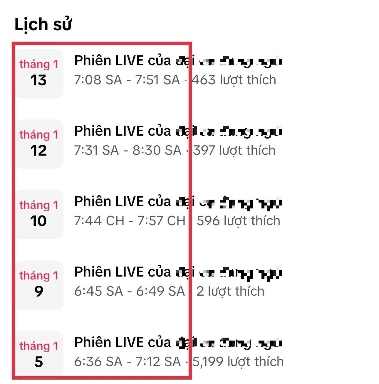 Lịch sử phiên livestream của nữ sinh viên này đều bắt đầu từ giờ vào lớp buổi sáng. Ảnh: NB&CL