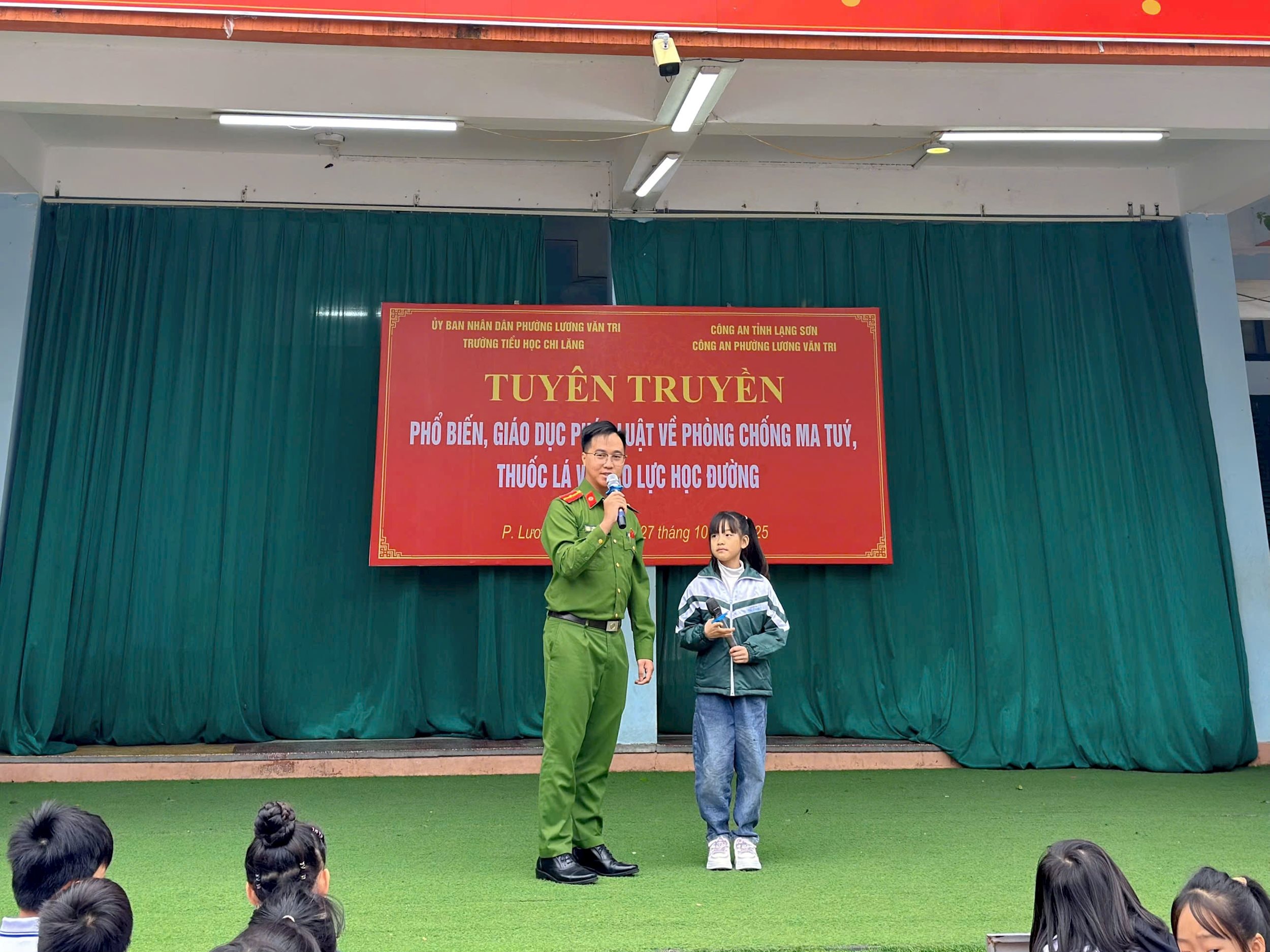 Thiếu úy Trần Thế Vũ, Công an phường Lương Văn Tri tuyên truyền phổ biến pháp luật cho học sinh trên địa bàn.