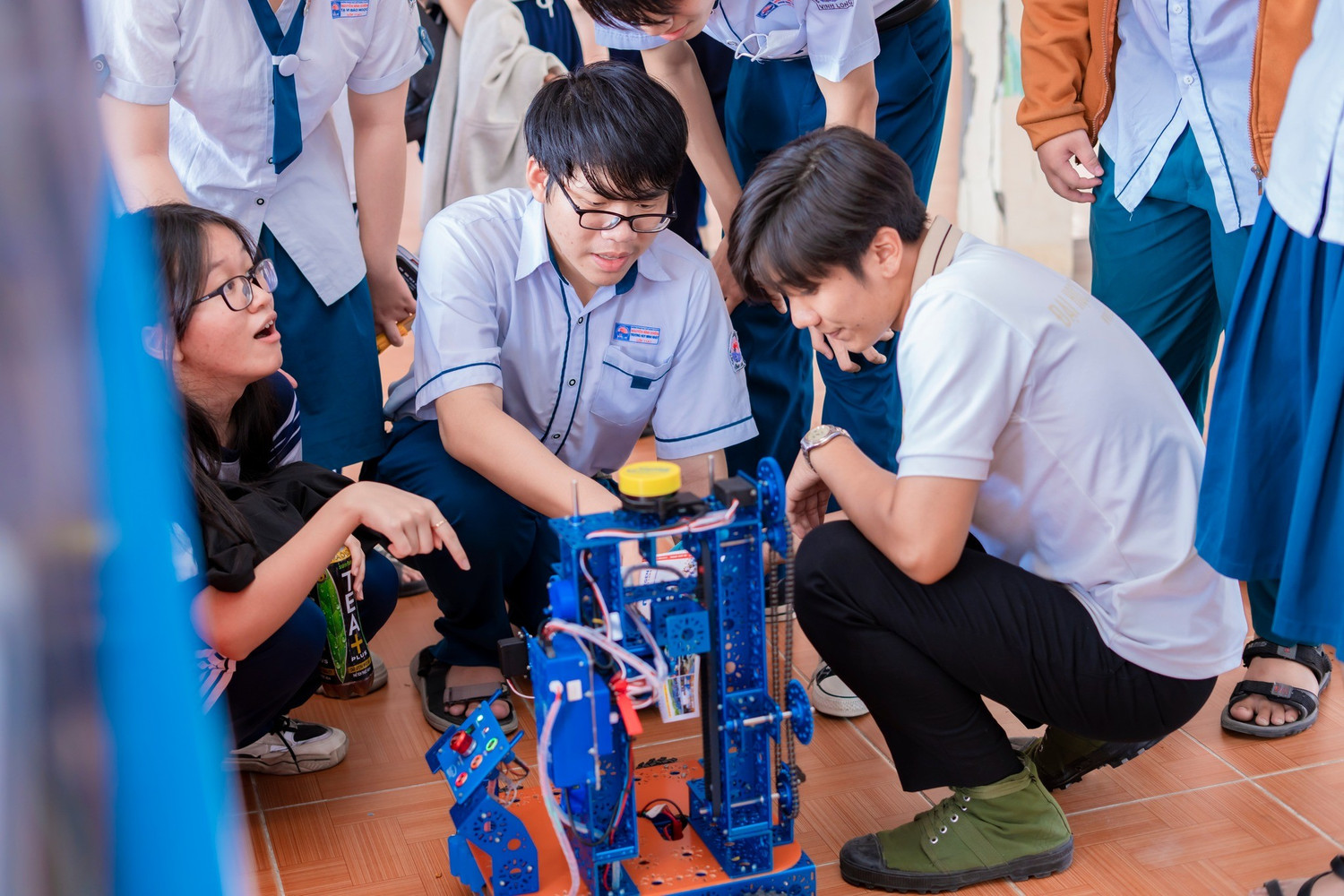 Học sinh Trường THPT chuyên Nguyễn Bỉnh Khiêm (Vĩnh Long) trong một cuộc thi về STEM. Ảnh: Minh Hoàng.