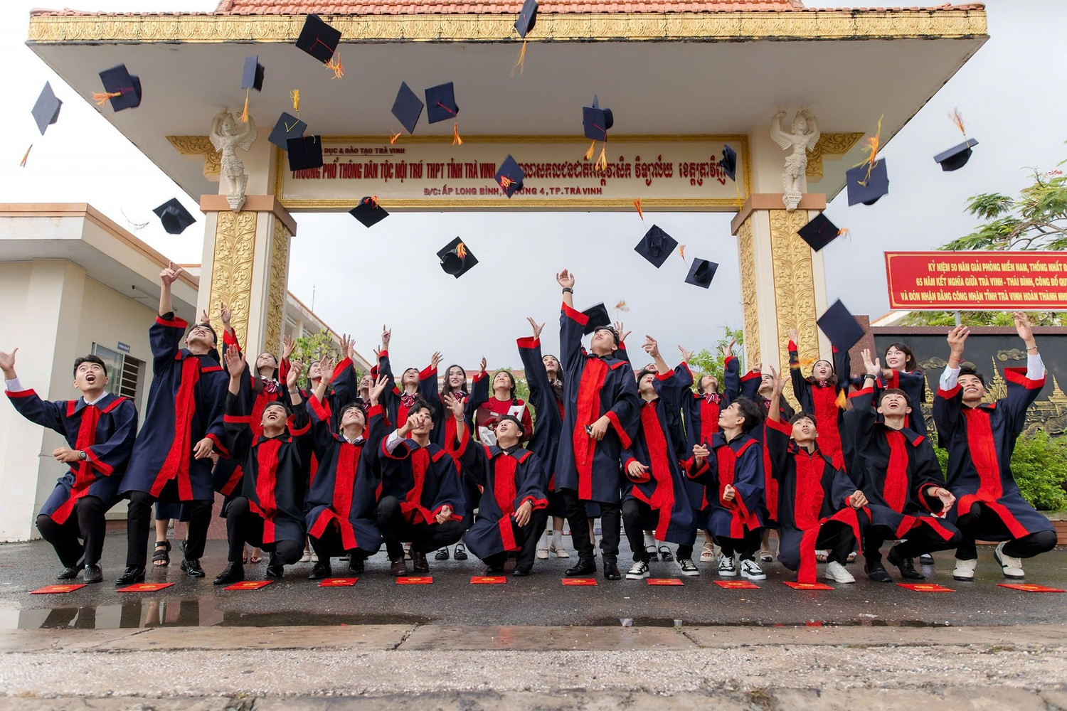 Học sinh Trường Phổ thông Dân tộc nội trú - THPT Trà Vinh (Vĩnh Long) tại lễ tốt nghiệp. Ảnh: Minh Hoàng.