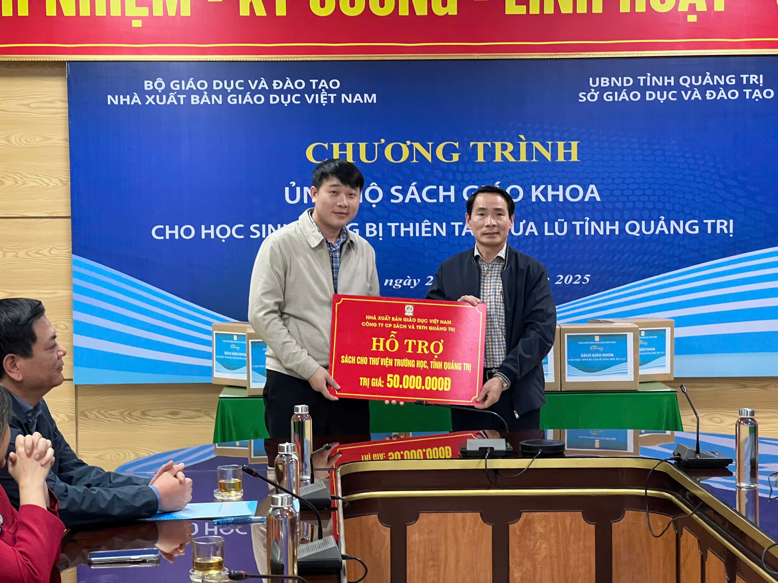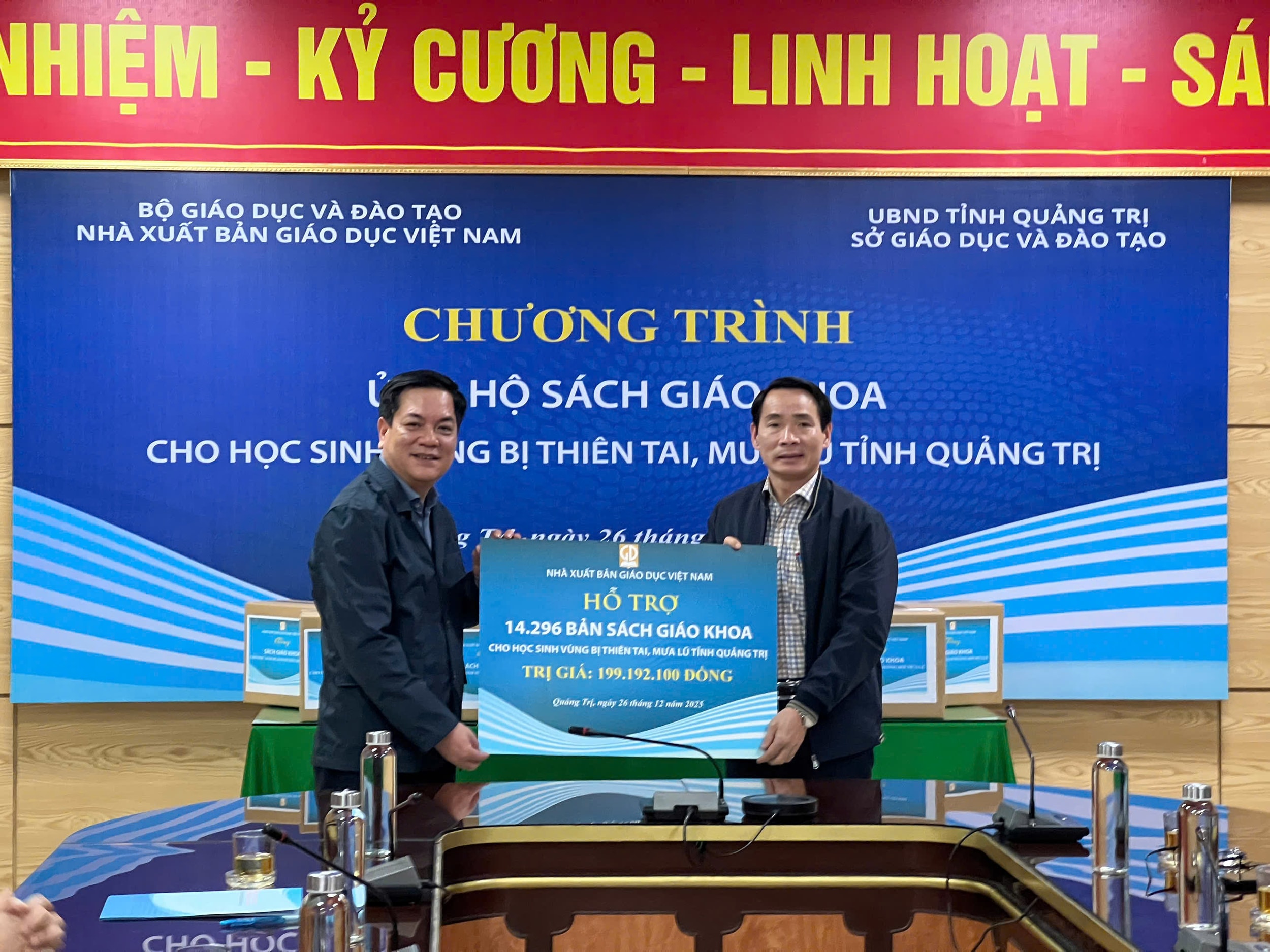(CLO) Hơn 14.000 bản sách giáo khoa vừa được Nhà xuất bản Giáo dục Việt Nam (NXBGDVN) trao tặng cho học sinh vùng lũ Quảng Trị, góp phần giúp các trường học sớm khắc phục hậu quả mưa lũ, ổn định hoạt động dạy và học.
