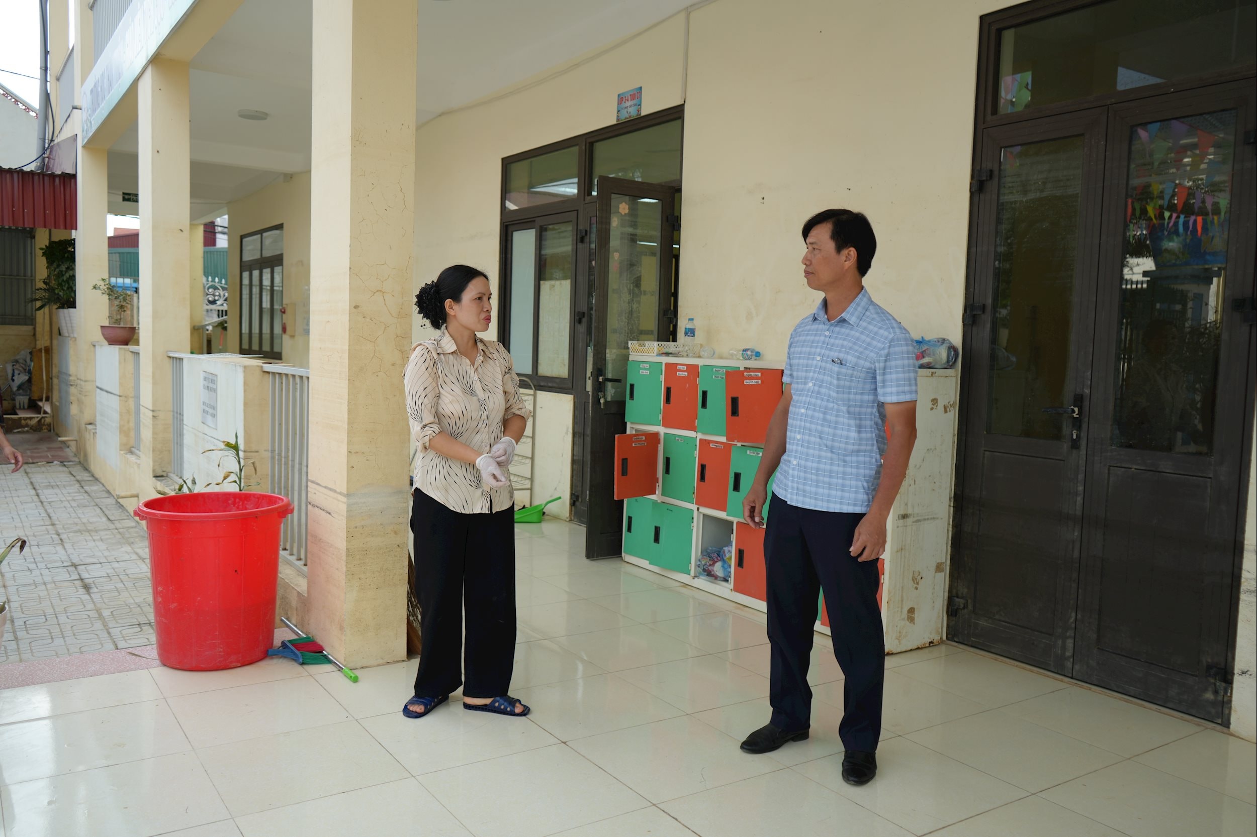 Ngày đầu tiên, có 593/710 trẻ đi học. Dù thiệt hại lớn với hơn 600 bộ bàn ghế, tủ, phản ngủ và thiết bị dạy học bị hư hỏng song nhà trường đã khẩn trương khắc phục, điều chỉnh kế hoạch giảng dạy để bảo đảm tiến độ năm học.