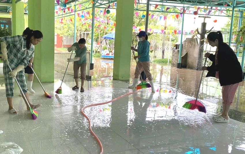 Ngành giáo dục cũng chỉ đạo các cơ sở huy động lực lượng tại chỗ dọn dẹp trường lớp, thực hiện theo phương châm “nước rút đến đâu, bùn hết đến đó”, bảo đảm môi trường sạch, an toàn trước khi đón học sinh trở lại. Trong quá trình khắc phục, các trường cần đặc biệt chú ý an toàn lao động, điện lưới và phòng tránh tai nạn sông nước.