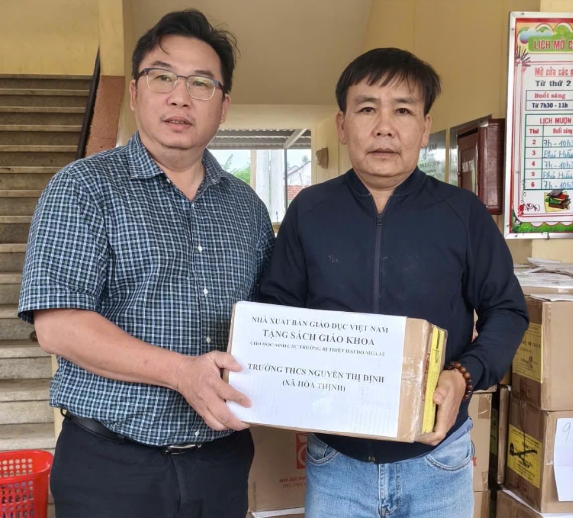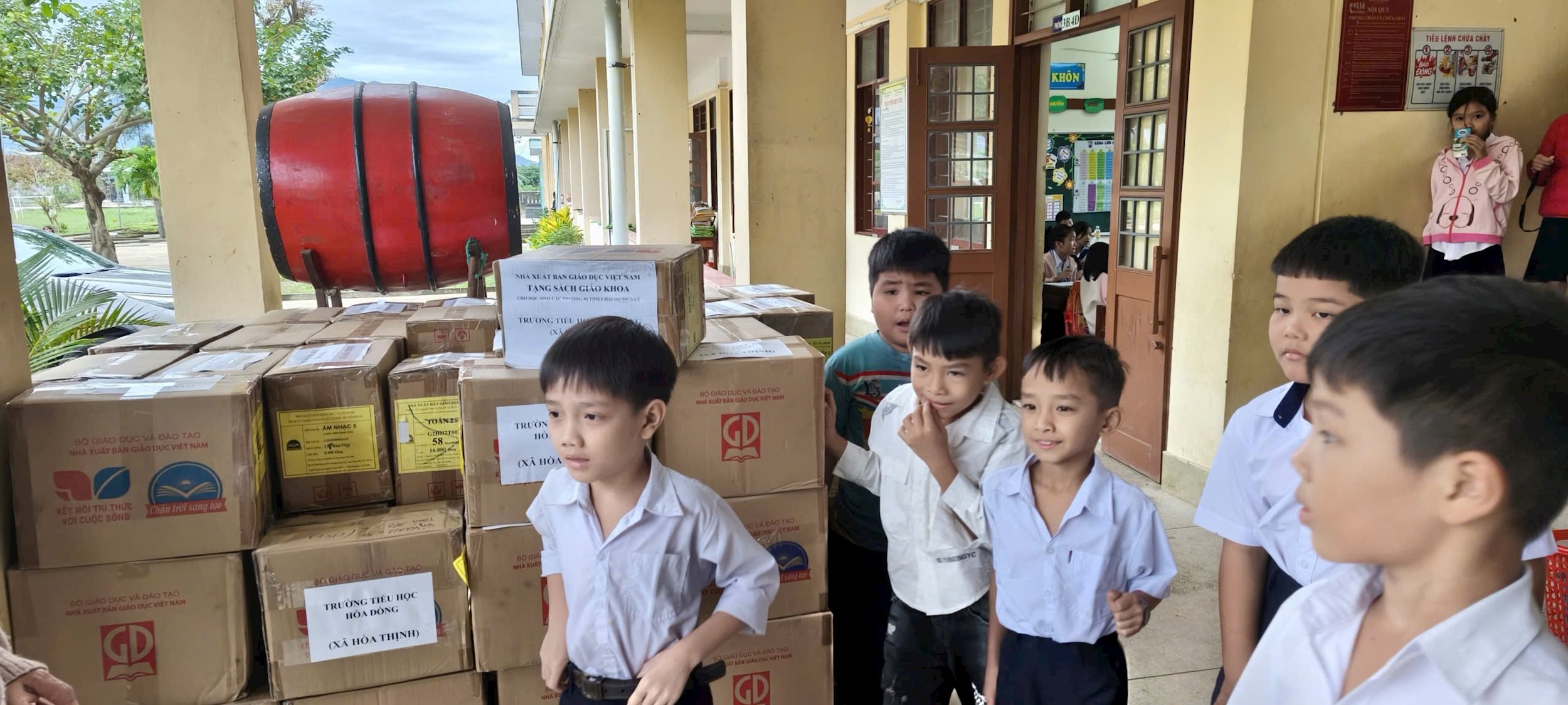 Đến Hòa Thịnh trong ngày 29/11, 400 thùng sách của NXBGDVN được chuyển gấp đến 3 trường: Tiểu học Hòa Đồng; THCS Nguyễn Thị Định; THCS Đồng Khởi. Đó không chỉ là những bộ sách mới, mà là sự tiếp sức cần thiết sau khi toàn bộ sách vở của hàng nghìn học sinh bị nước lũ cuốn trôi chỉ trong vài giờ.