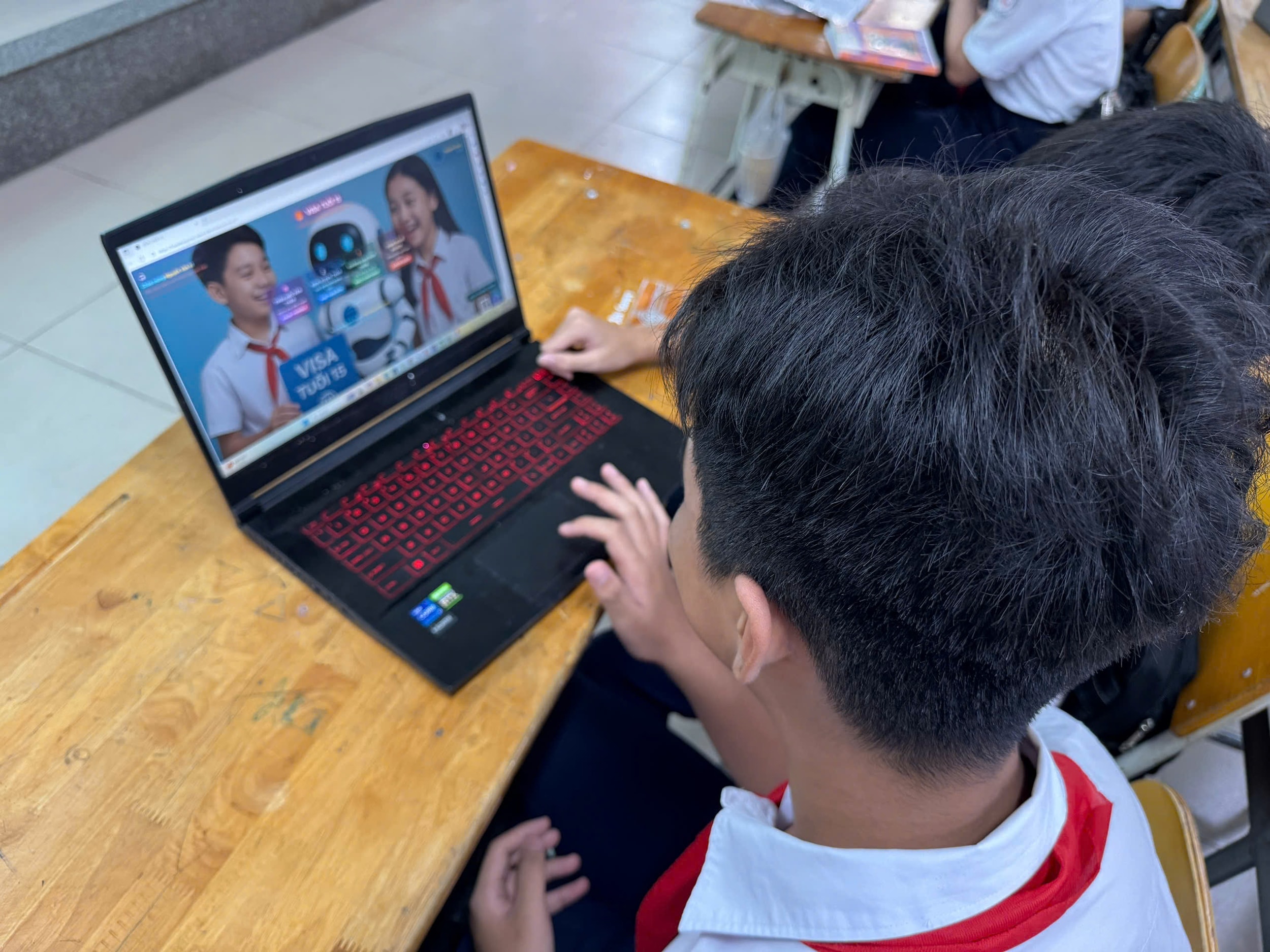 Học sinh THCS trải nghiệm trắc nghiệm hướng nghiệp trên website “VISA Tuổi 15”. Ảnh: NVCC