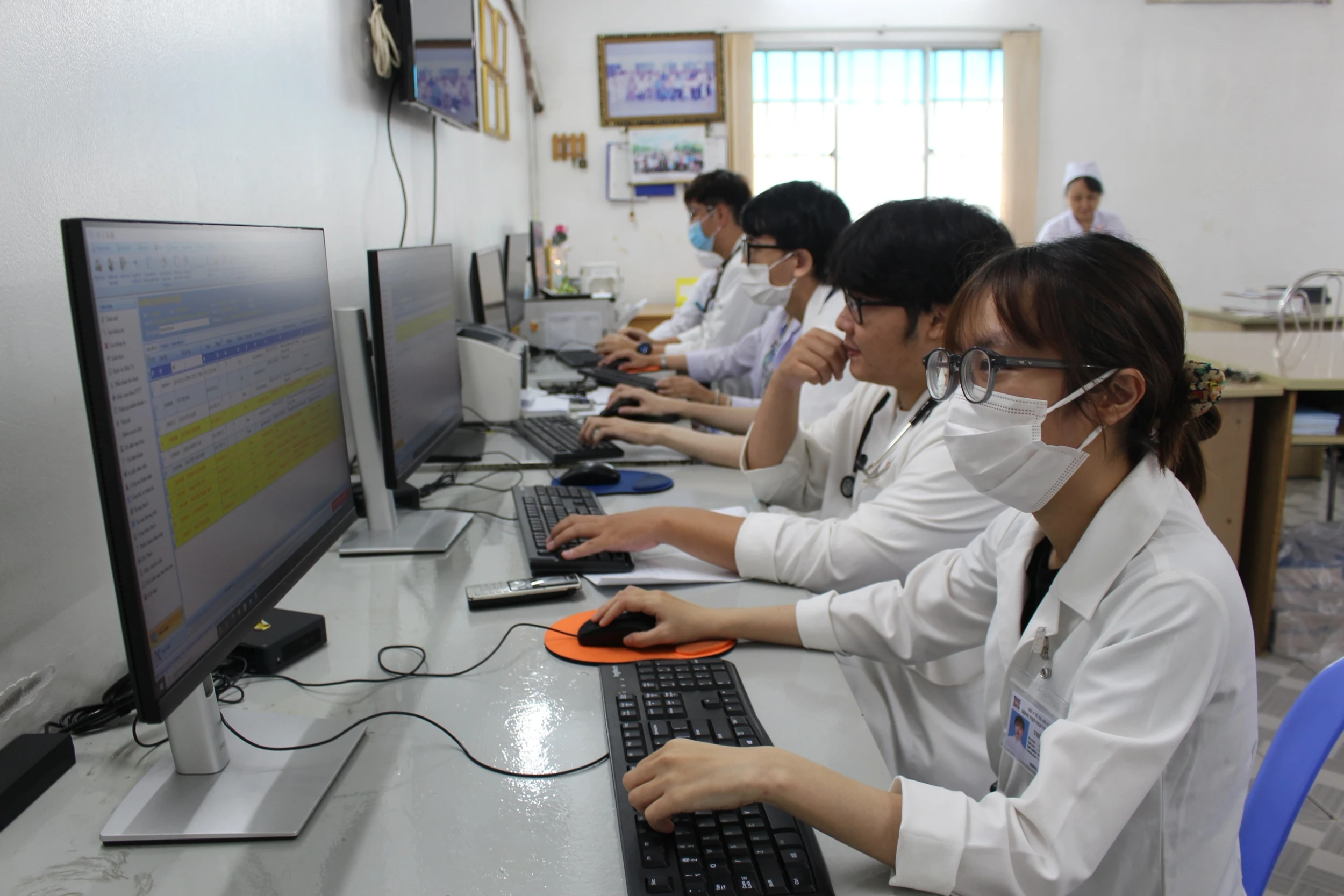 Cán bộ y tế của Bệnh viện Nguyễn Tri Phương tra cứu nhiều thông tin thông qua các hệ thống kết nối liên thông dữ liệu nội viện. Ảnh: Quang Viên