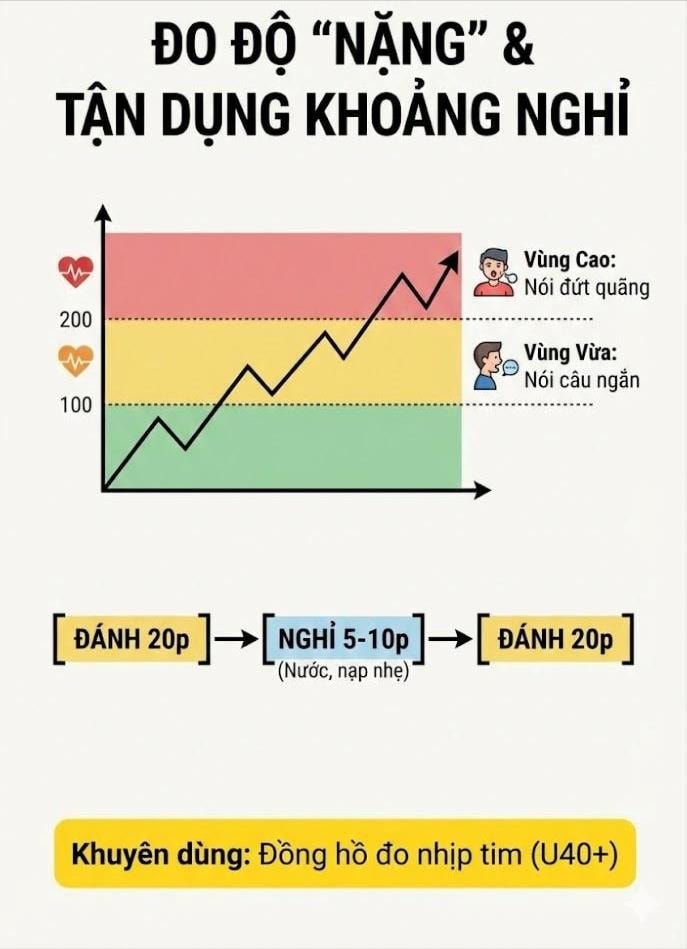 Nhịp tim dao động mạnh giữa các ngưỡng hiếu khí và kỵ khí, chỉ số tiêu hao năng lượng (MET) có thể đạt mức tương đương nhiều môn vợt được xem là “nặng” hơn. Nếu không có nền tảng thể lực phù hợp và chiến lược tập luyện khoa học, nguy cơ quá tải là điều khó tránh.