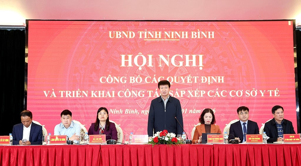 Tại hội nghị, lãnh đạo Sở Nội vụ Ninh Bình đã công bố các Quyết định của UBND tỉnh về việc giải thể 4 Trung tâm Y tế: Nho Quan, Kim Sơn, Hải Hậu, Phủ Lý; tổ chức lại Trung tâm Y tế khu vực và thành lập 18 Bệnh viện Đa khoa khu vực; chuyển chức năng, nhiệm vụ y tế dự phòng, dân số về Trạm Y tế thuộc UBND cấp xã.