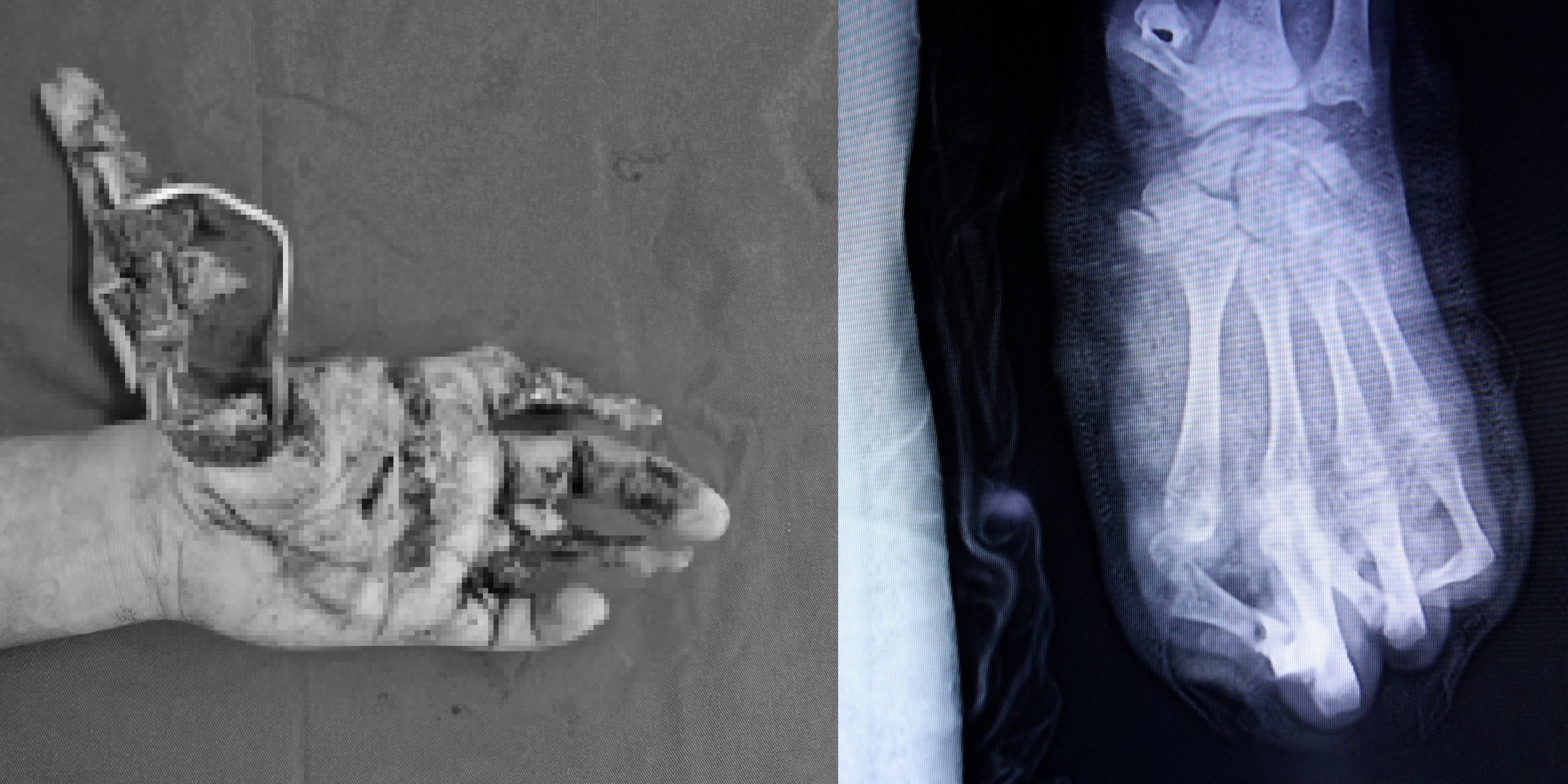 (CLO) Dù được cấp cứu và phẫu thuật khẩn cấp, các bác sĩ chỉ có thể giữ lại 2/5 ngón tay, để lại nguy cơ mất chức năng bàn tay vĩnh viễn.