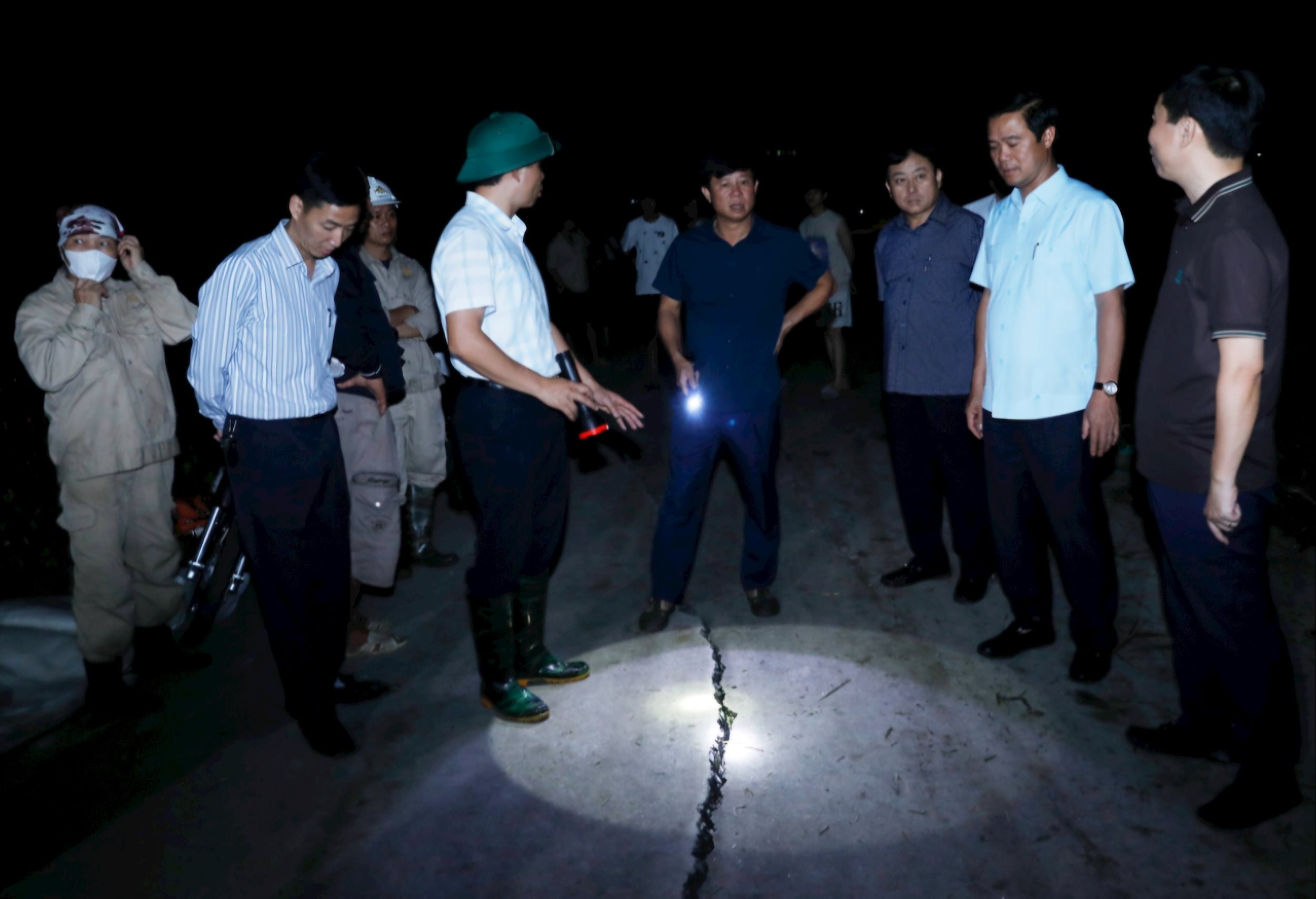 Đê hữu Cầu và đê tả Thương ghi nhận nhiều điểm rò rỉ, thẩm lậu, xói lở và lún sụt. UBND xã Tam Giang và Yên Trung đã xử lý tạm thời ngay từ giờ đầu. Một số cống dưới đê nước tiếp tục chảy tự do vào ruộng đồng.