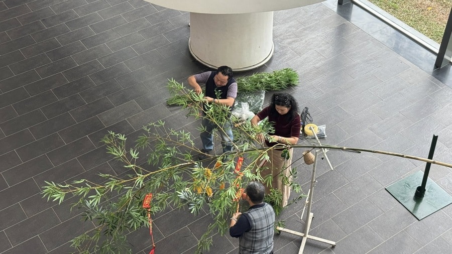 Bảo tàng Dân tộc học dựng nêu, tái hiện không gian Tết Việt