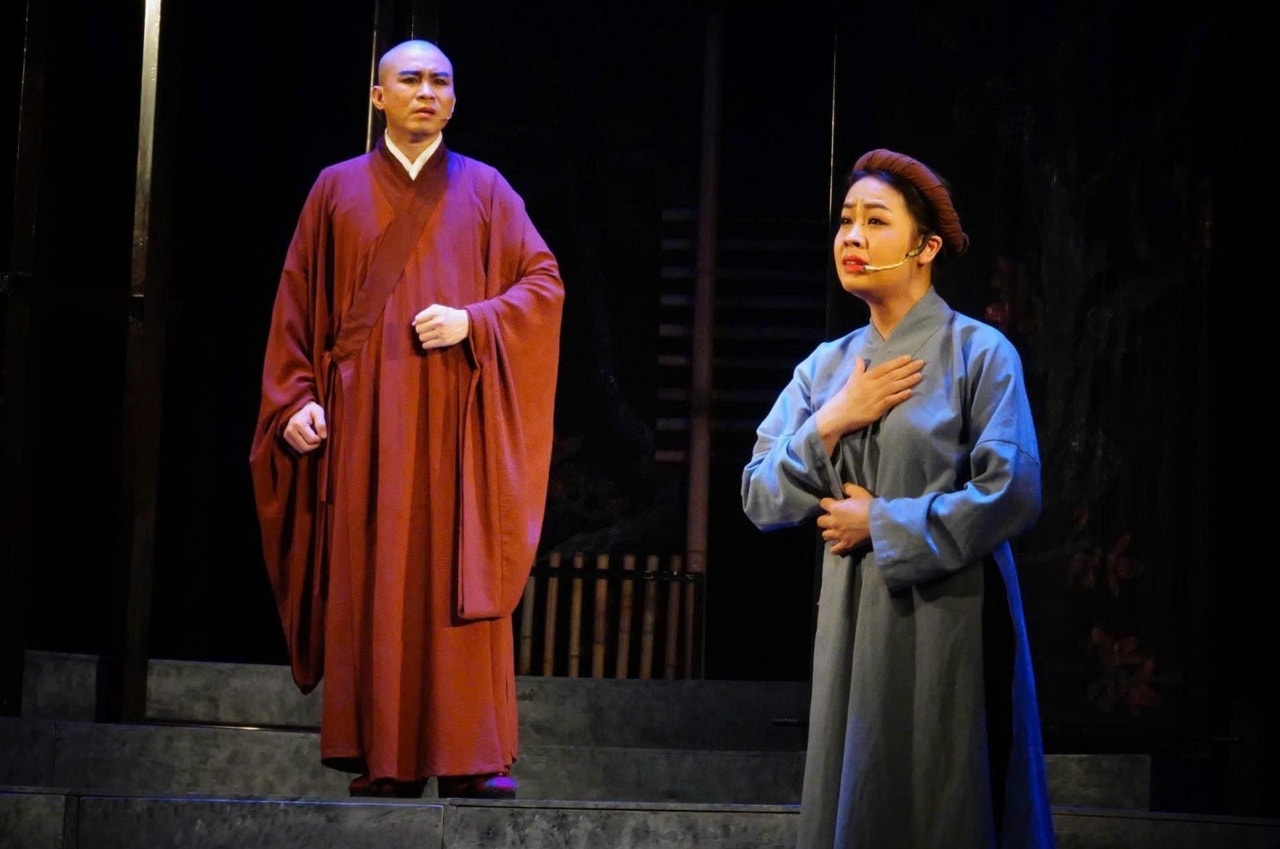 Cảnh trong vở cải lương “Huyền thoại gò Rồng Ấp” của Nhà hát Sân khấu Truyền thống Quốc gia Việt Nam. Ảnh: NSƯT Trần Quang Khải