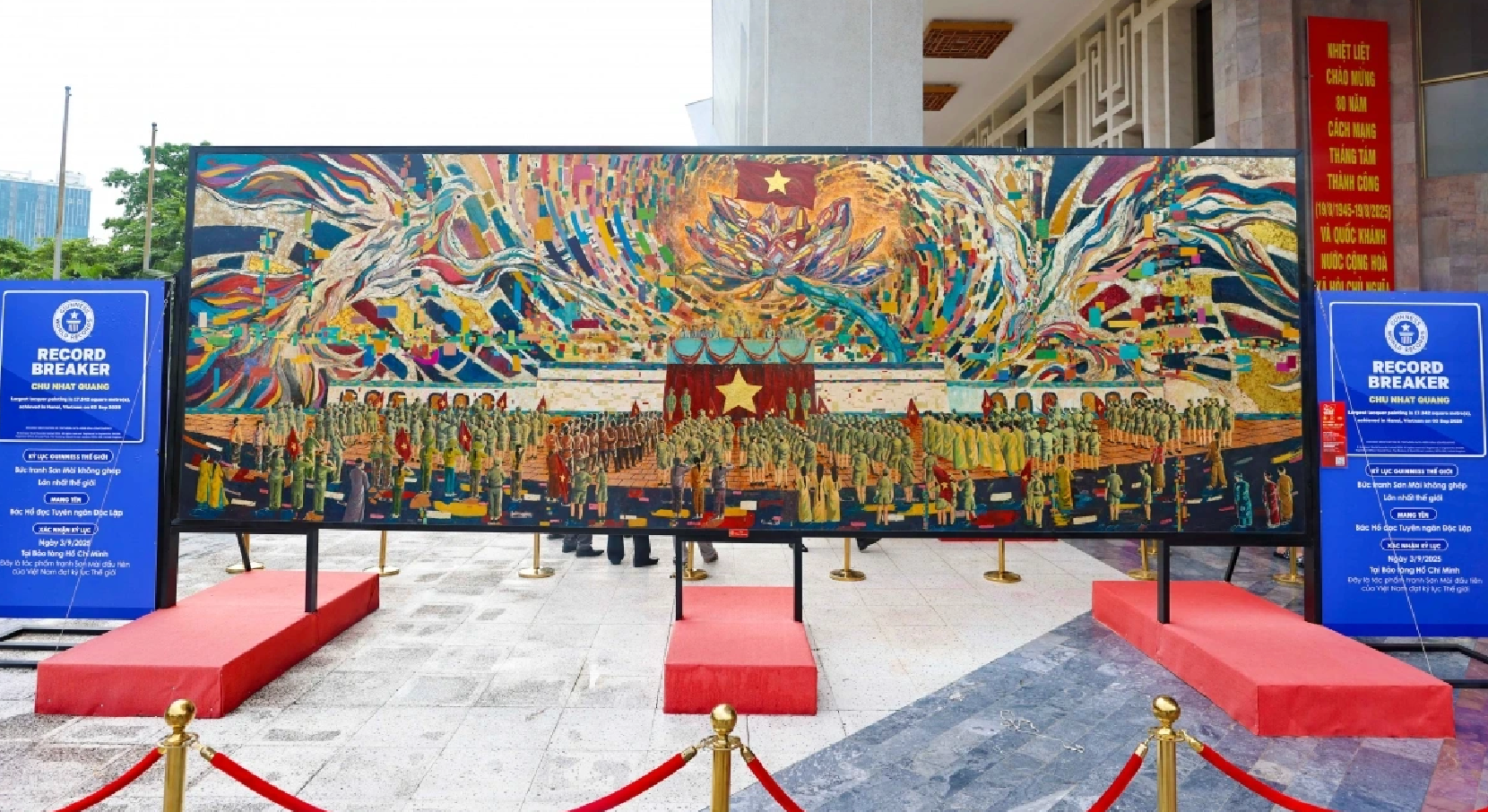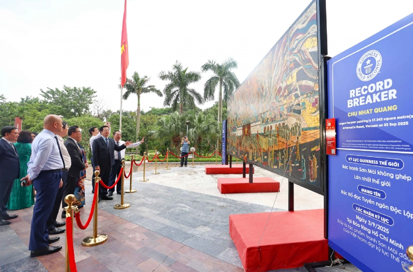 Tác phẩm “Bác Hồ đọc Tuyên ngôn Độc lập” của họa sĩ Chu Nhật Quang vừa được Tổ chức Kỷ lục Thế giới (World Record Union – WorldKings) công nhận là “Bức tranh sơn mài liền khối lớn nhất thế giới”. Đây là kỷ lục thế giới đầu tiên của Việt Nam trong thể loại tranh sơn mài, đánh dấu một cột mốc quan trọng của mỹ thuật nước nhà trên bản đồ nghệ thuật quốc tế.