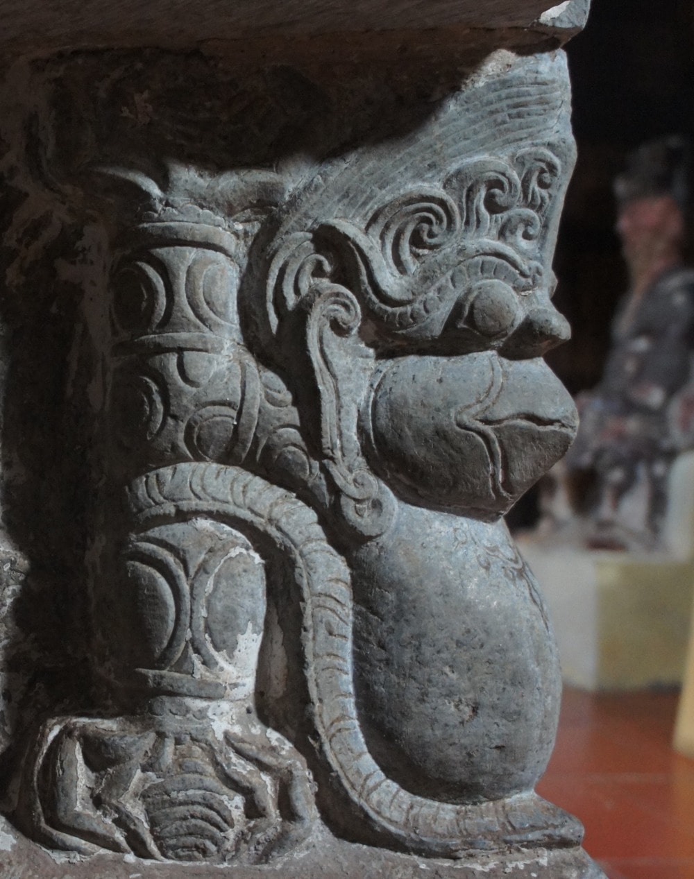 Thân bàn thờ chạm nổi thần điểu Garuda trong hình hài ngộ nghĩnh