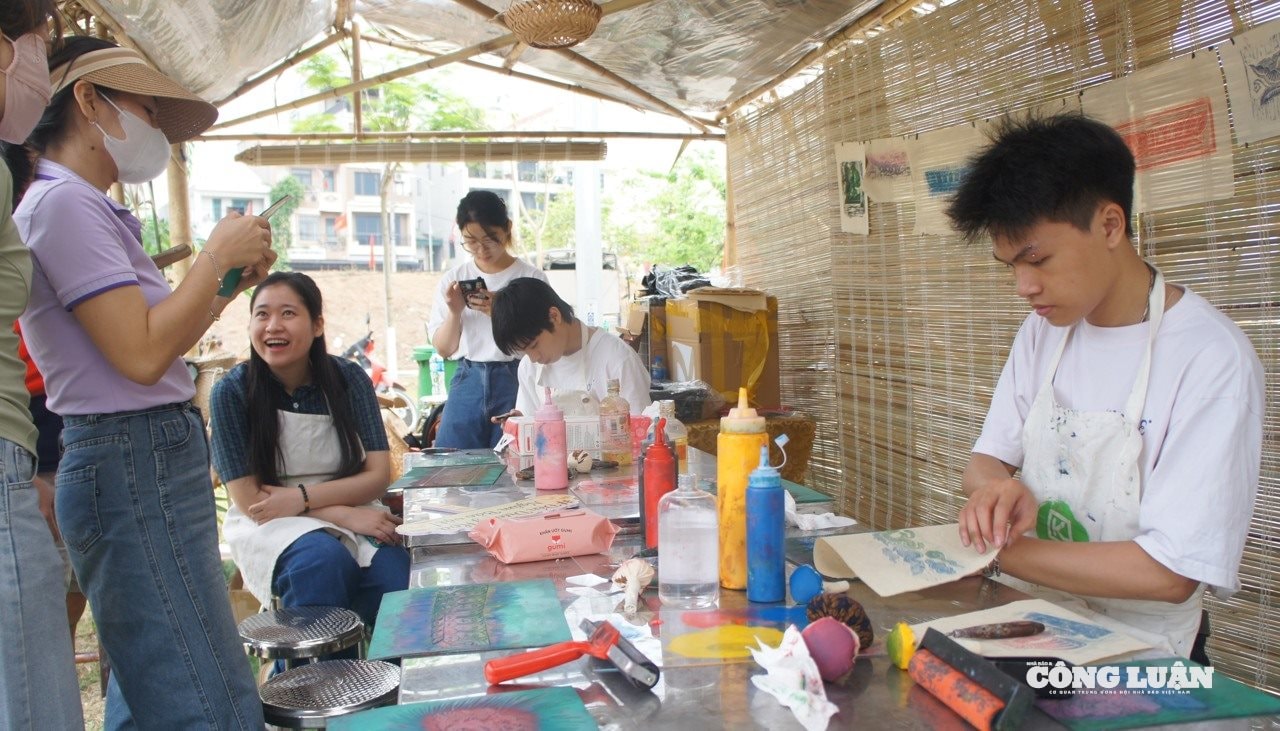 Các bạn trẻ của Thư viện Dương Liễu in tranh, lấy cảm hứng từ Bảo vật quốc gia Bàn thờ Phật chùa Hương Trai