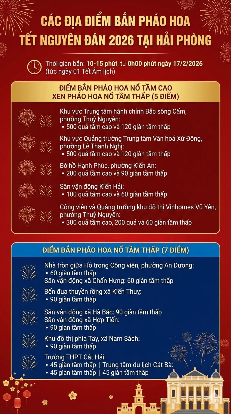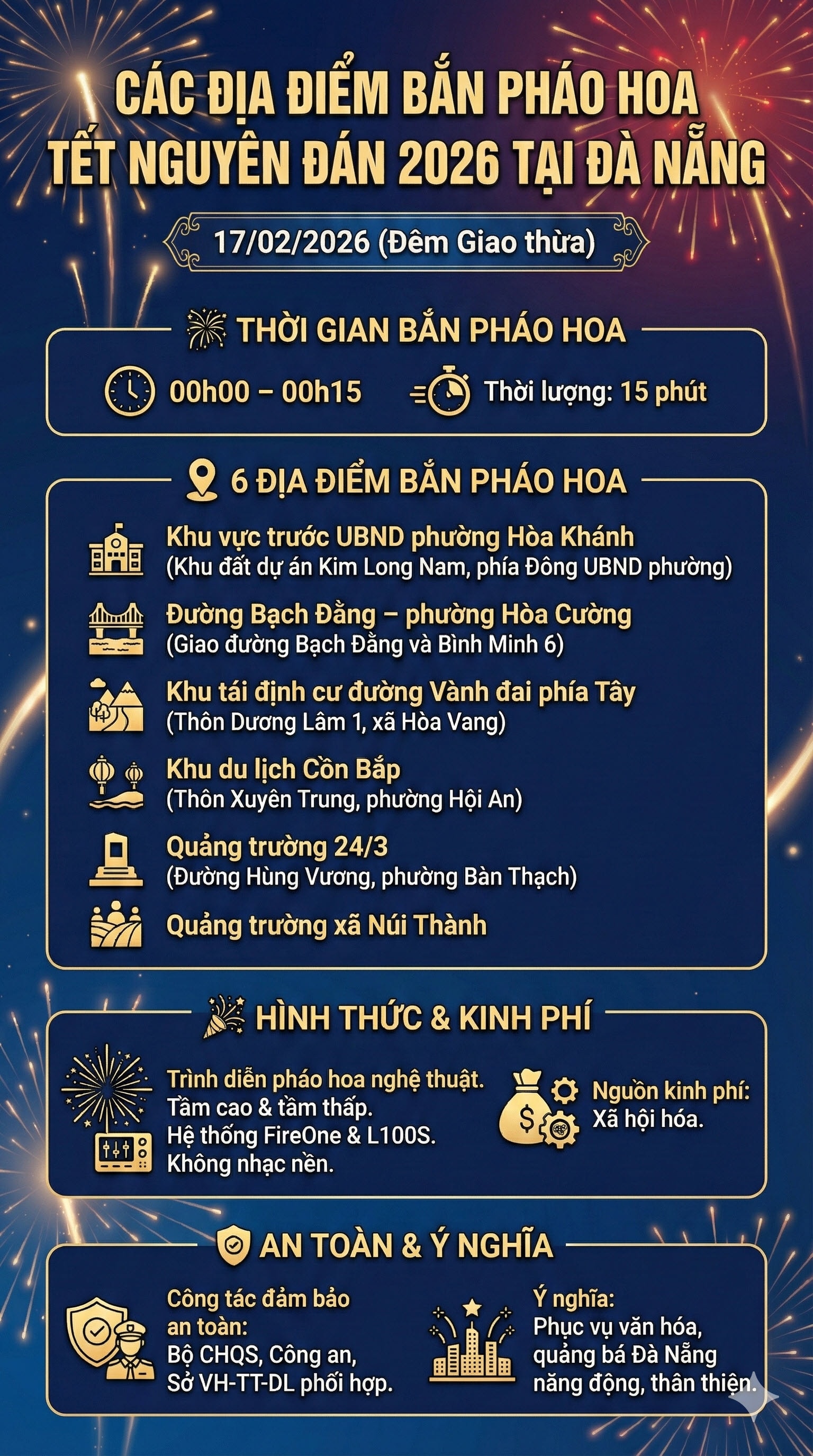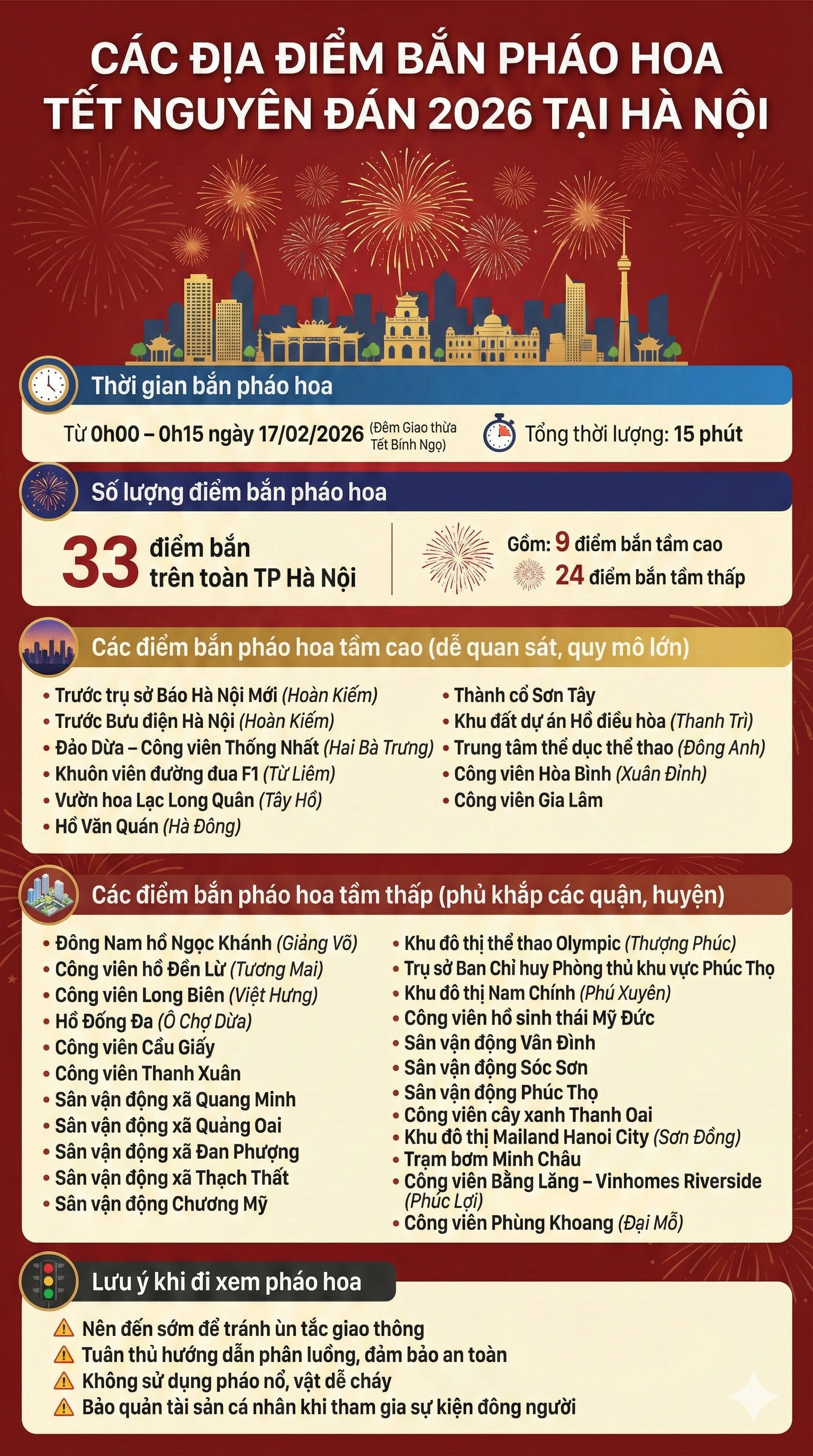 Cập nhật địa điểm bắn pháo hoa Tết Bính Ngọ 2026 trên cả nước