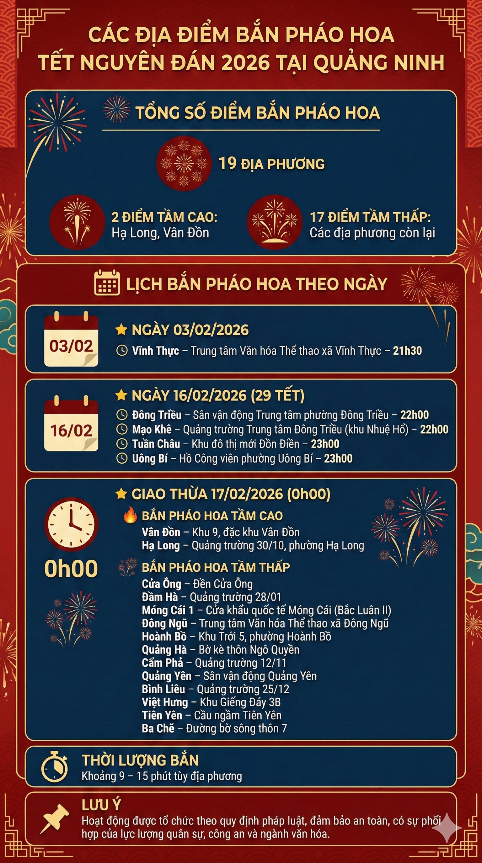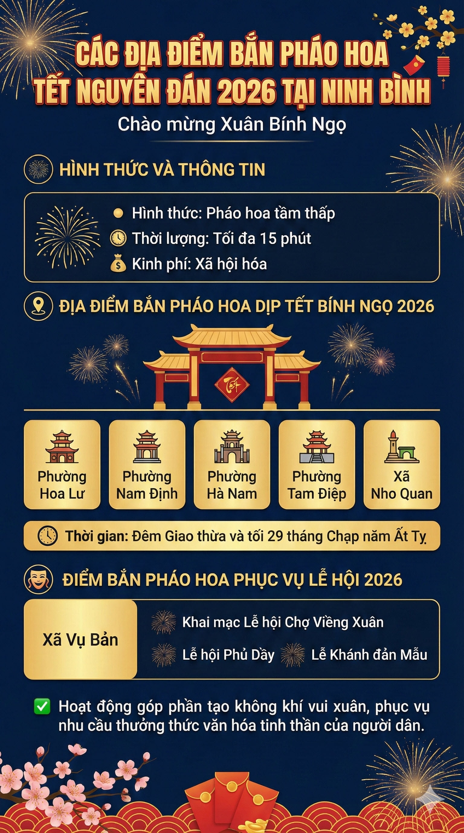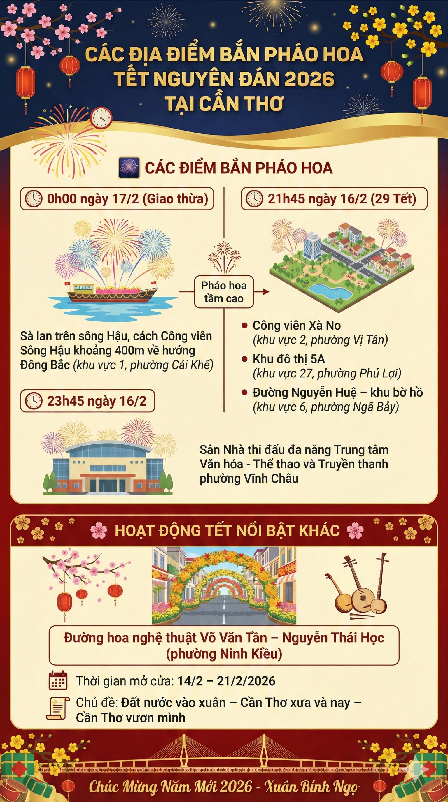 Cập nhật địa điểm bắn pháo hoa Tết Bính Ngọ 2026 trên cả nước