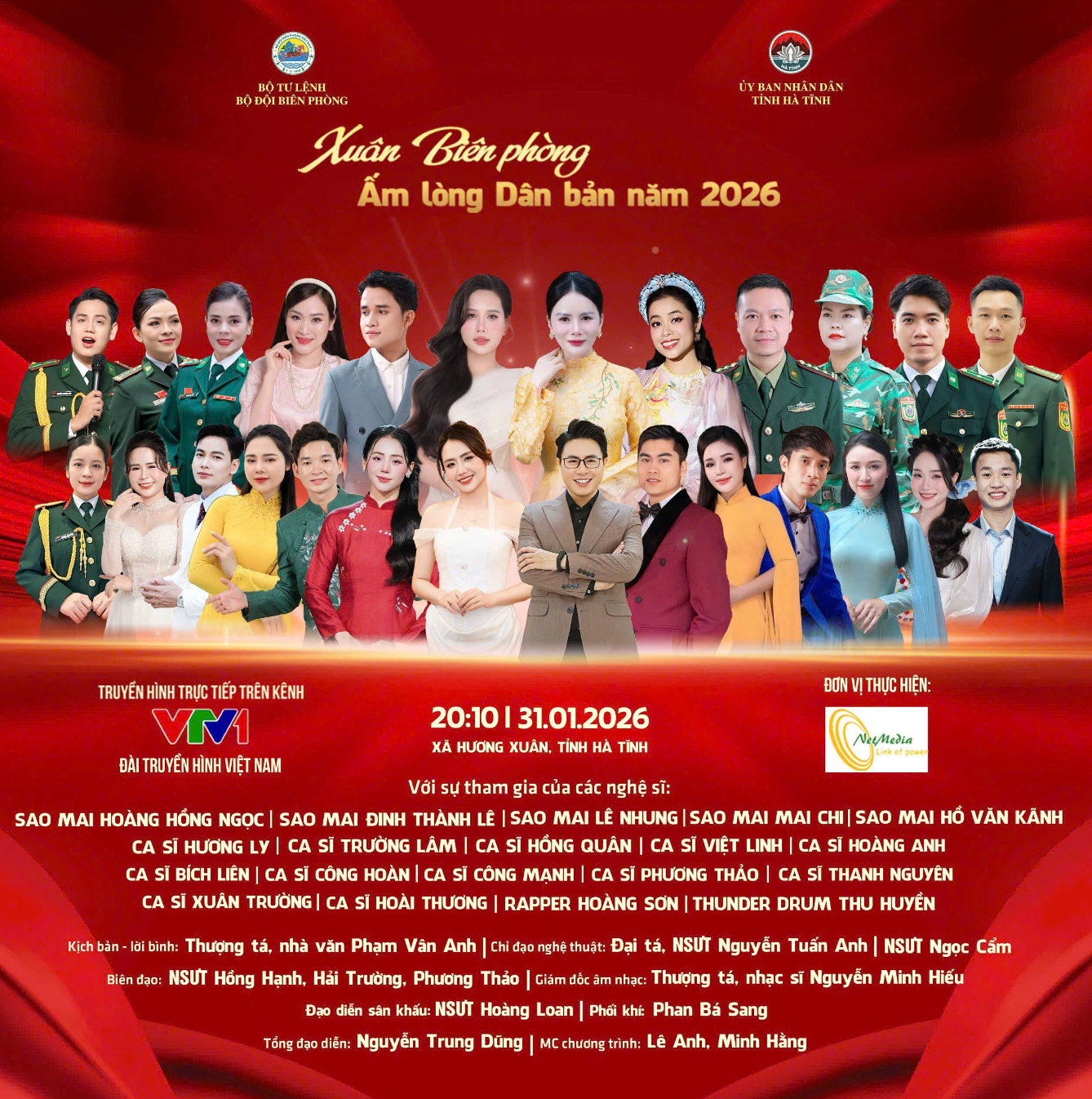 (CLO) Chào mừng thành công Đại hội XIV của Đảng, kỷ niệm 96 năm Ngày thành lập Đảng Cộng sản Việt Nam (3/2/1930 - 3/2/2026) và đón Xuân Bính Ngọ 2026, Bộ Tư lệnh Bộ đội Biên phòng phối hợp với Tỉnh ủy, UBND tỉnh Hà Tĩnh và Đài Truyền hình Việt Nam tổ chức Chương trình chính luận nghệ thuật đặc biệt “Xuân Biên phòng ấm lòng dân bản” năm 2026.
