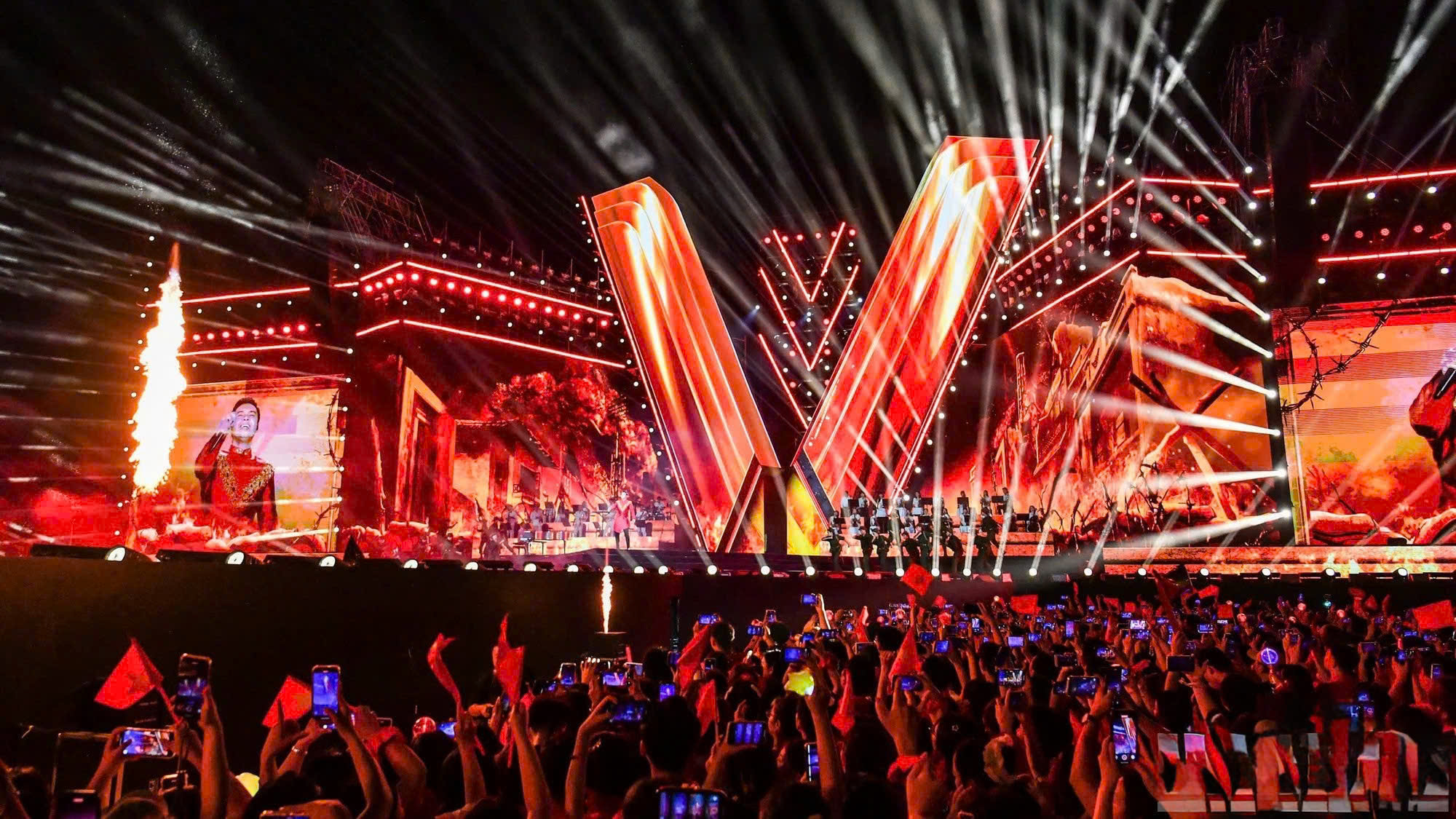 Sân khấu hình chữ V biểu tượng cho “Việt Nam – Chiến thắng” của concert “Tổ quốc trong tim”. Ảnh: Baonhandan.