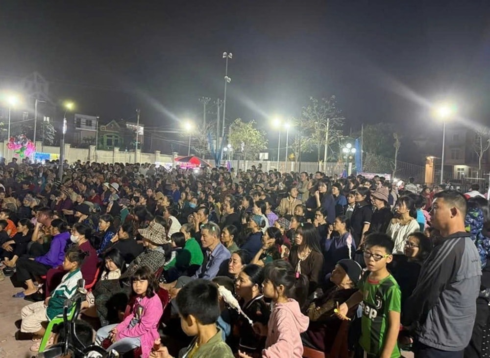 Đông đảo khán giả đến với đêm diễn của Đoàn nghệ thuật cải lương Vàm Cỏ ở xã Thư Lâm (Hà Nội) tối 27/2. Ảnh: Đoàn cải lương Vàm Cỏ