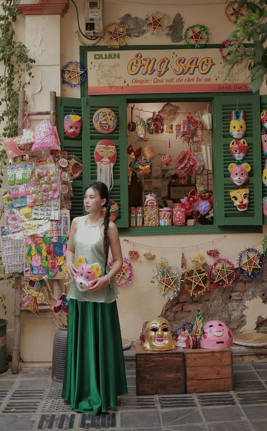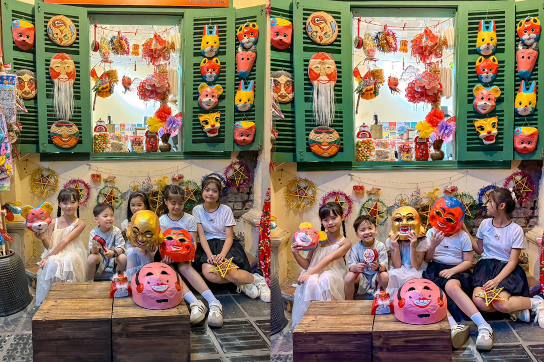 Giữa vô vàn cách trang trí Trung thu hiện đại, anh Ngọc Anh chọn tái hiện ký ức xưa, lấy cảm hứng từ những gian hàng trên phố Đào Duy Từ – nơi vẫn còn lưu giữ đồ chơi và món quà tuổi thơ. Những chiếc đèn ông sao tre, mặt nạ bồi, bảng hiệu cũ được sưu tầm, bài trí mộc mạc, khiến không gian quán trở nên gần gũi như một “phiên chợ tuổi thơ” giữa lòng Hà Nội.