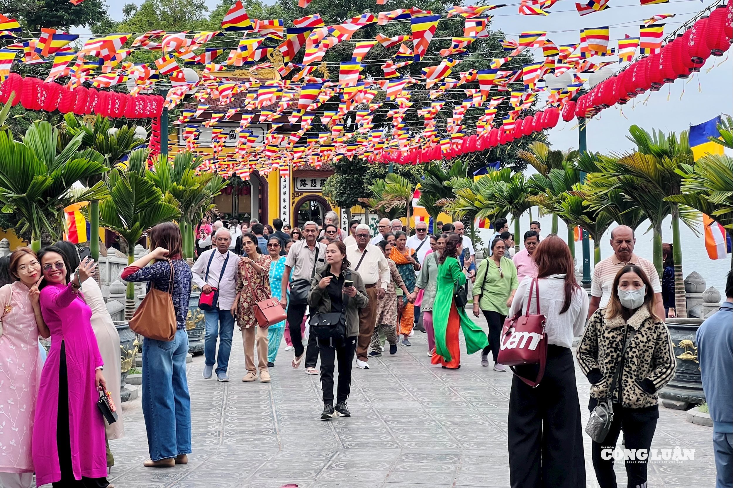 Đường dẫn vào chùa tấp nập người dân.