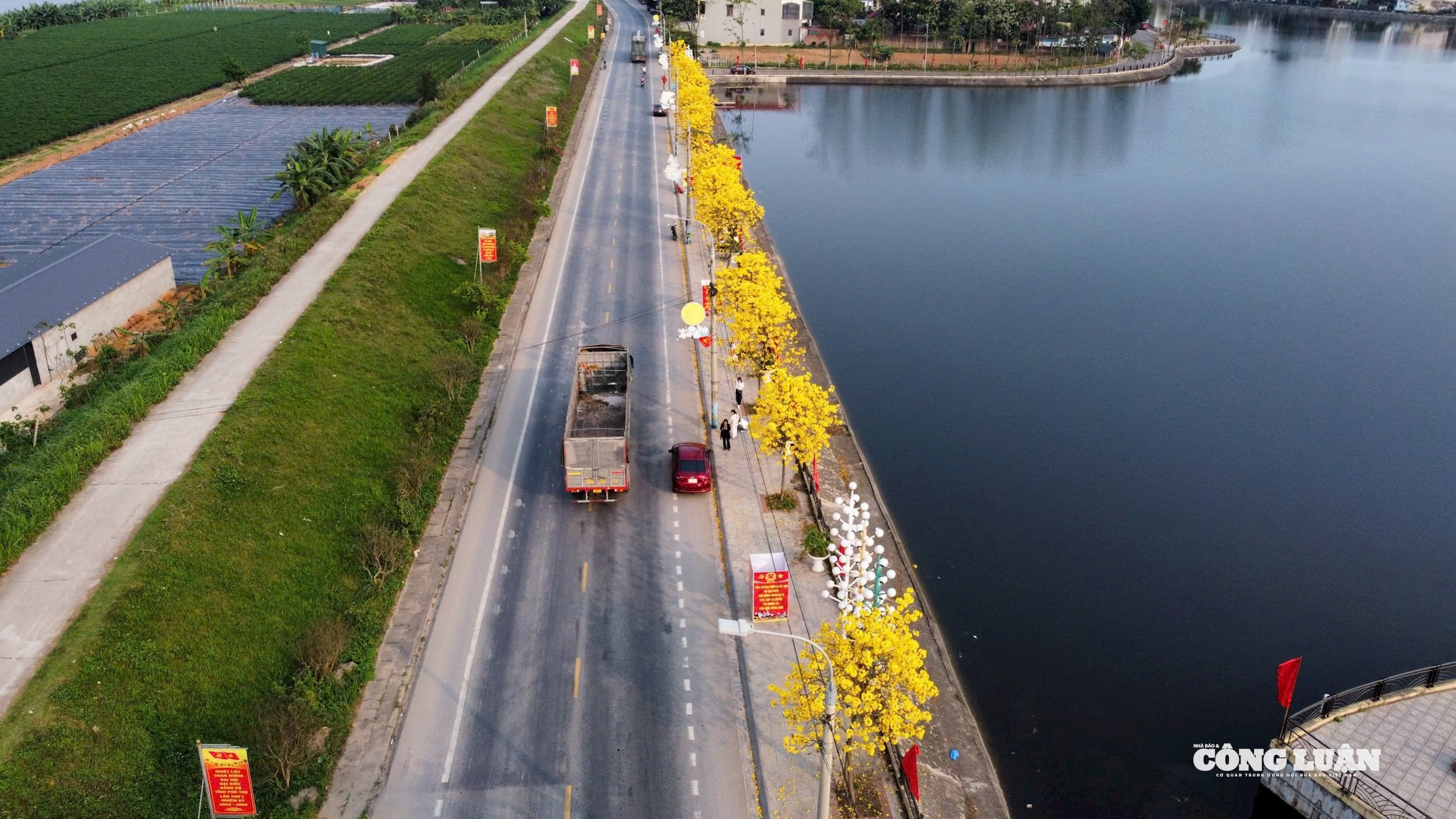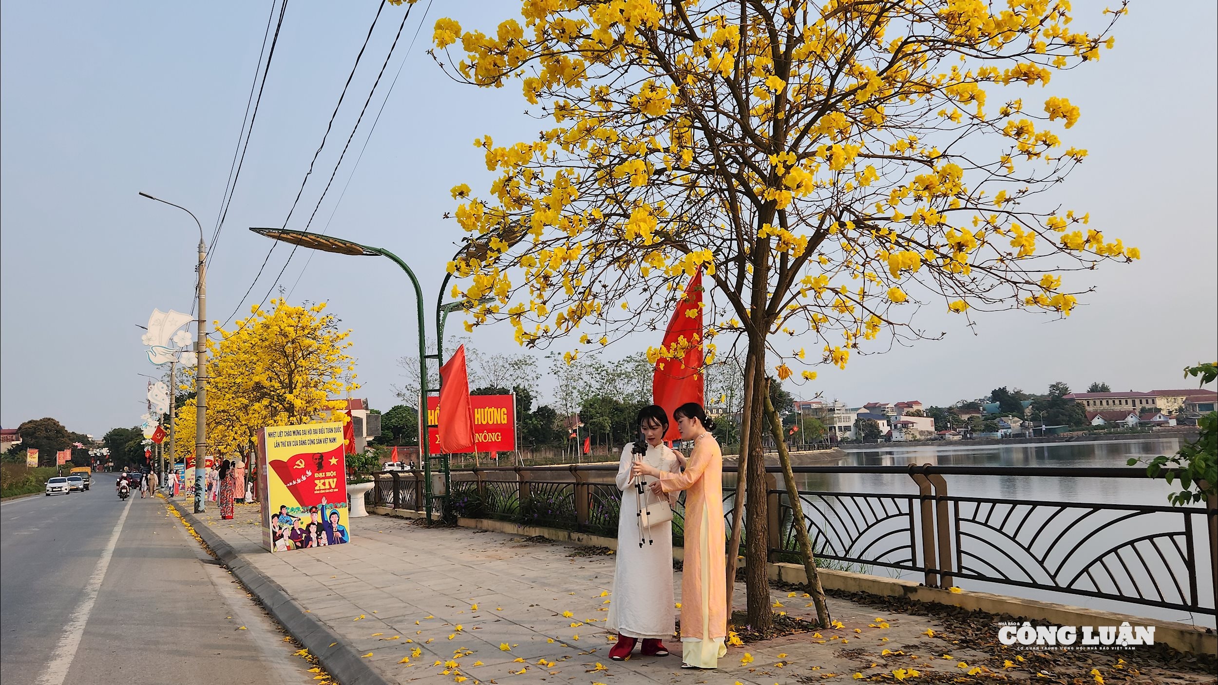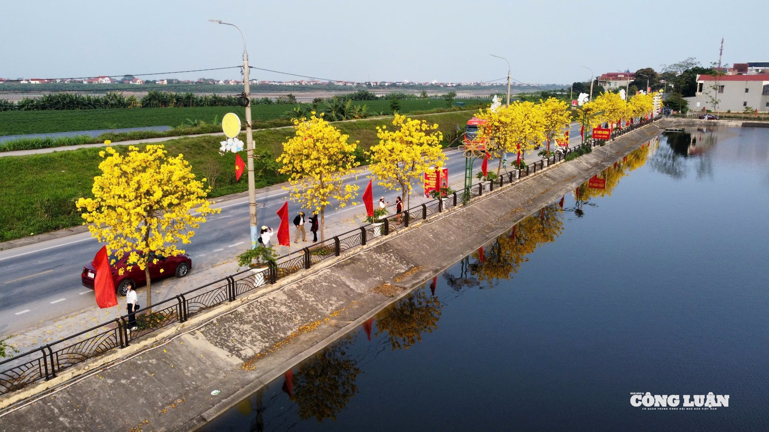 (CLO) Những ngày này, hồ Thiên Hương (xã Tam Nông, tỉnh Phú Thọ) bỗng chốc hóa thành tọa độ "sống ảo" hot nhất nhờ hàng cây phong linh nhuộm vàng rực rỡ. Khung cảnh lãng mạn ven hồ đang thu hút đông đảo giới trẻ đến check-in, săn lùng những khung hình "triệu view".