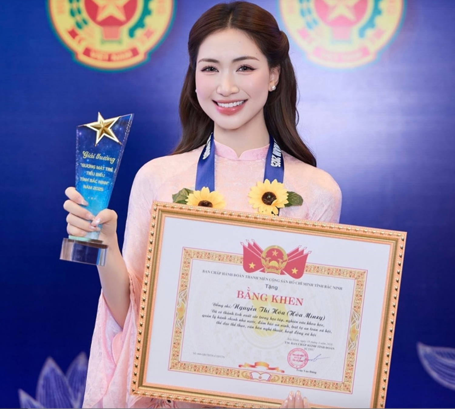 (CLO) Ca sĩ Hòa Minzy vừa đón thêm tin vui khi được tỉnh Bắc Ninh vinh danh là "Gương mặt trẻ tiêu biểu năm 2025", sau một năm hoạt động nghệ thuật và cộng đồng đầy dấu ấn.