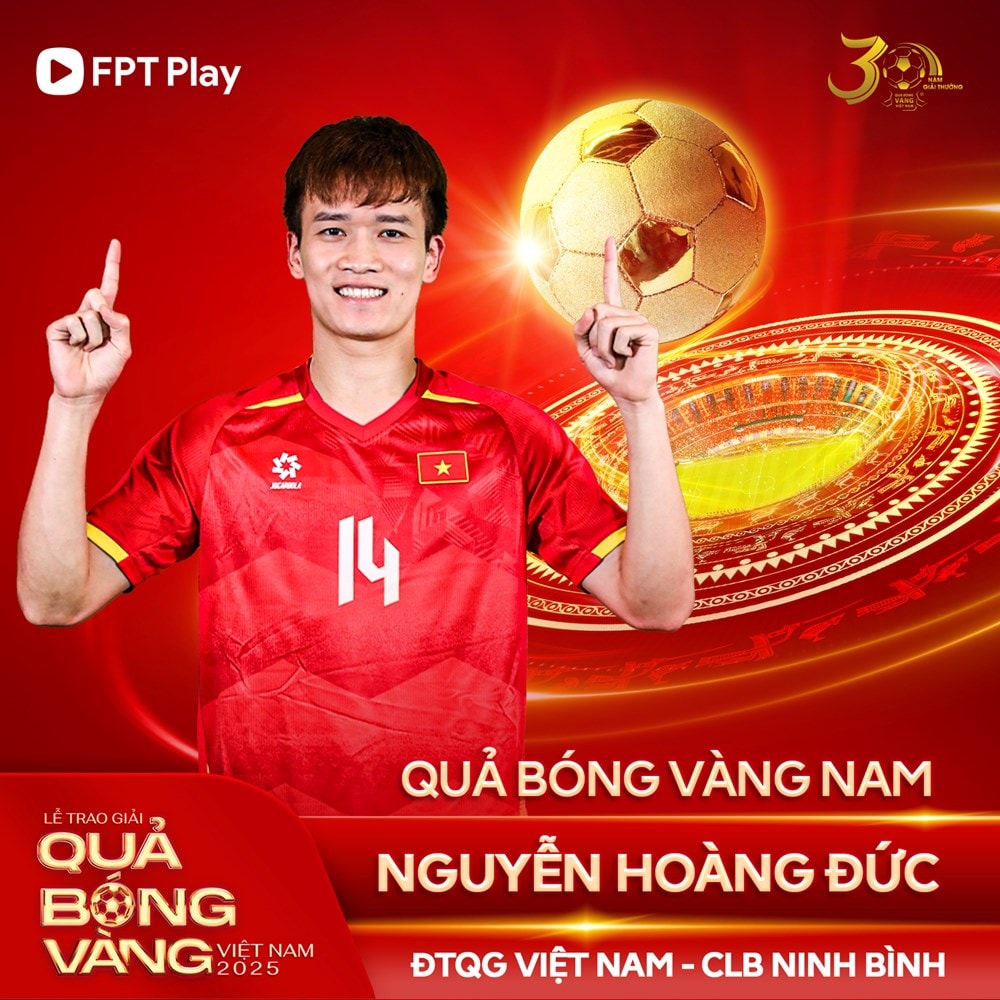 Xuất sắc vượt qua các đồng nghiệp, tiền vệ Nguyễn Hoàng Đức và nữ tuyển thủ Nguyễn Thị Bích Thuỳ đã lần lượt giành Quả bóng vàng nam, nữ của Giải thưởng Quả bóng vàng Việt Nam 2025.
