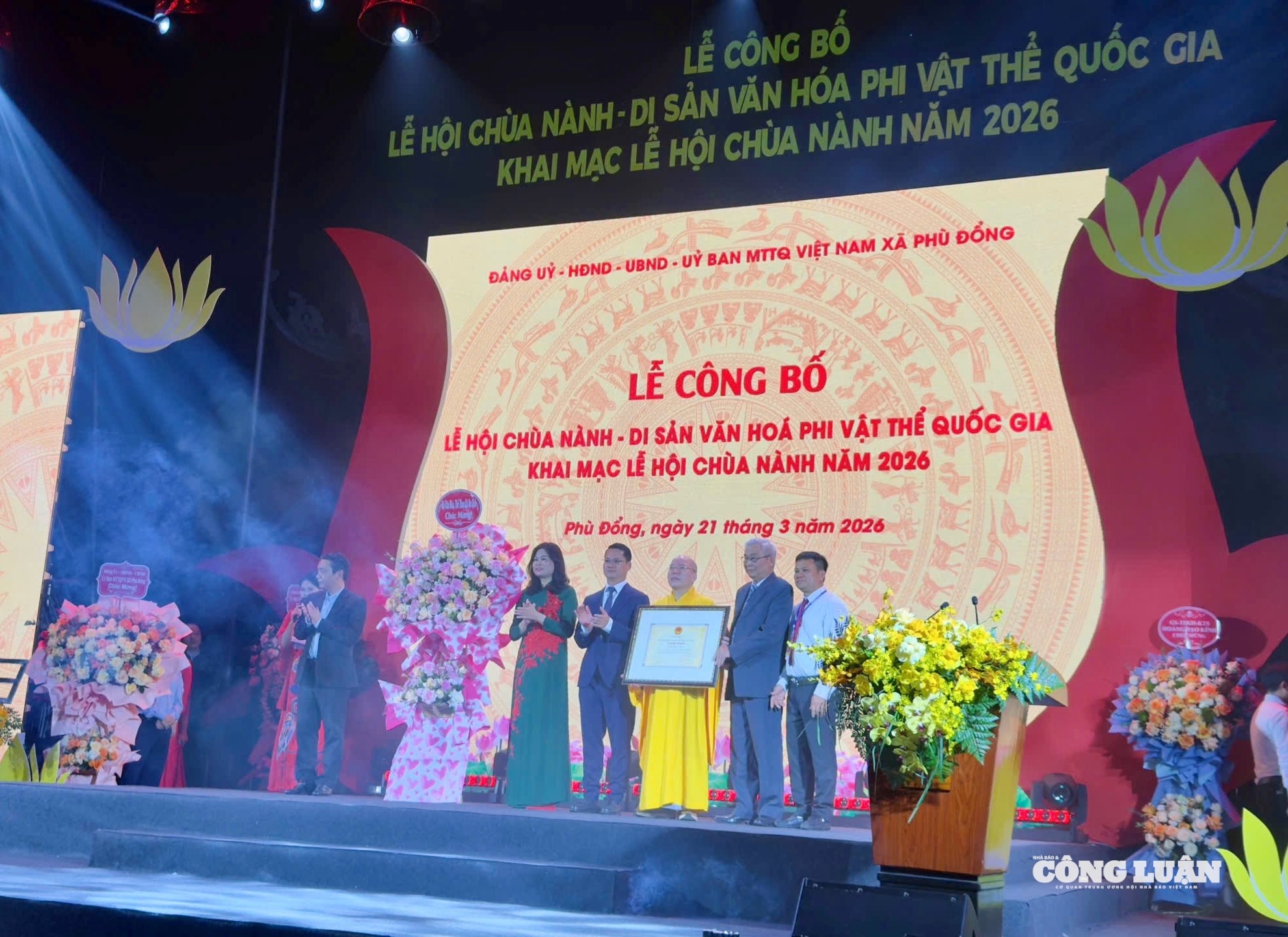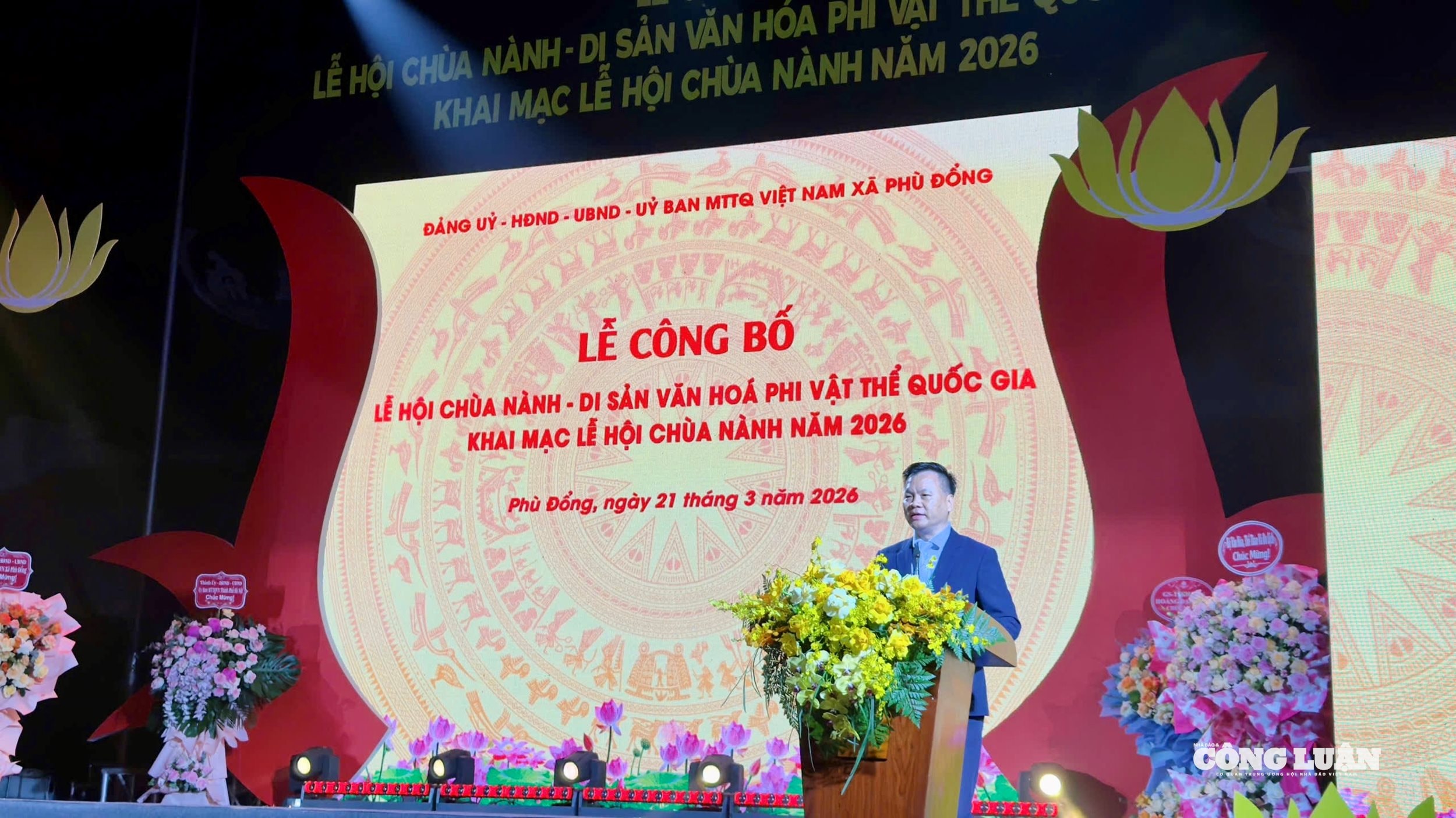 (CLO) Tối 21/3, Lễ công bố Lễ hội truyền thống Chùa Nành là Di sản văn hóa phi vật thể quốc gia và khai mạc lễ hội năm 2026 đã diễn ra tại xã Phù Đổng (TP Hà Nội).
