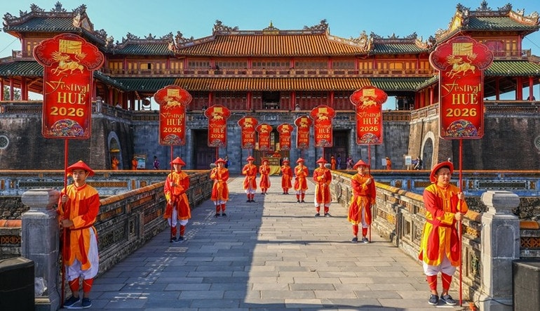(CLO) Lễ Ban sóc được tái hiện bằng hình thức sân khấu hóa tại khu vực cửa Ngọ Môn - Đại Nội Huế, chính thức mở màn cho Festival Huế 2026.