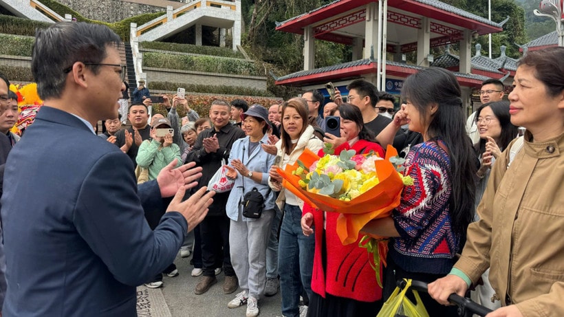 Các du khách quốc tế được tiếp đón nồng hậu tại khu vực Cửa khẩu quốc tế Hữu Nghị, tỉnh Lạng Sơn. Ảnh: Lê Quốc Đạt