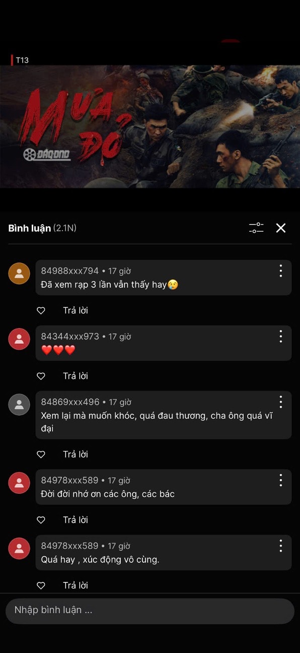 Khán giả bình luận sau khi xem phim Mưa đỏ trên TV360