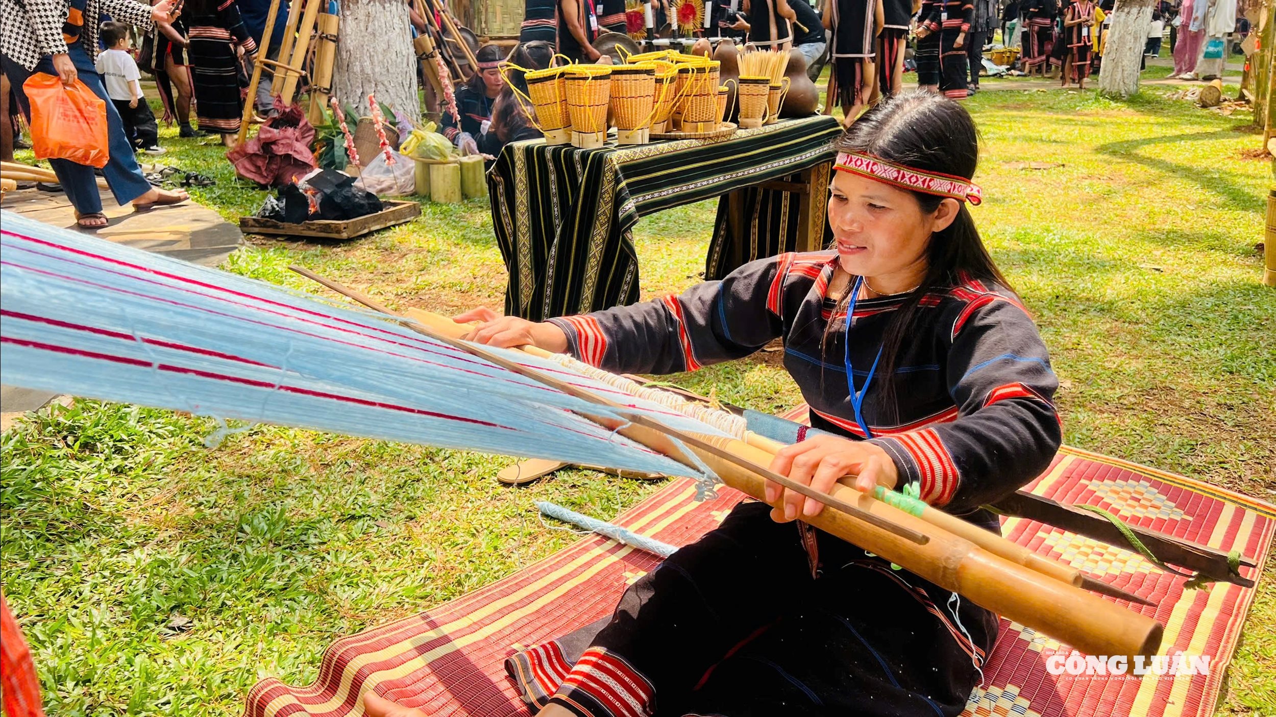 Đôi bàn tay khéo léo của người phụ nữ Jrai bên khung dệt ngay tại Quảng trường Đại Đoàn Kết