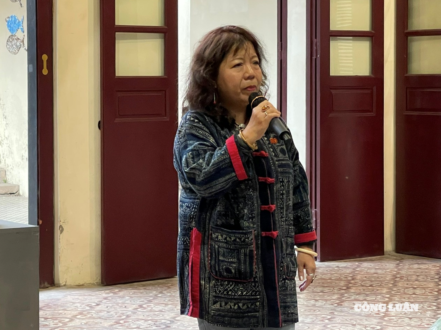 Họa sĩ Nguyễn Mai Hương, Chủ tịch Hiệp hội Nghệ sĩ châu Á, chi nhánh tại Việt Nam chia sẻ tại buổi lễ.