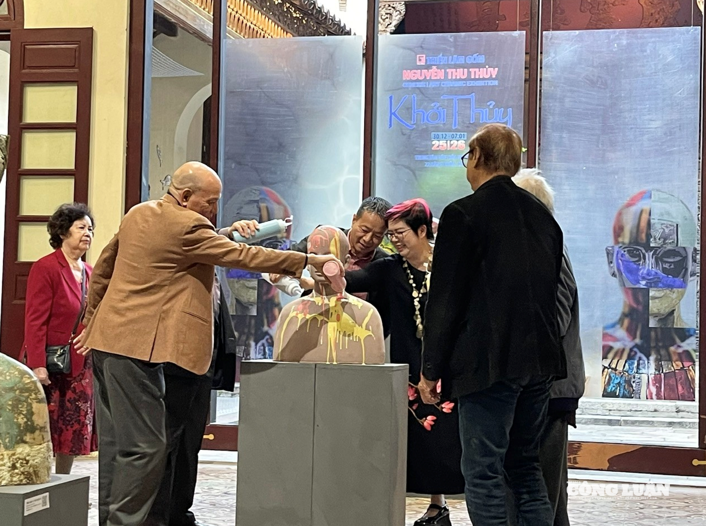 Khách mời thực hiện nghi thức “Khởi thủy” tại triển lãm.