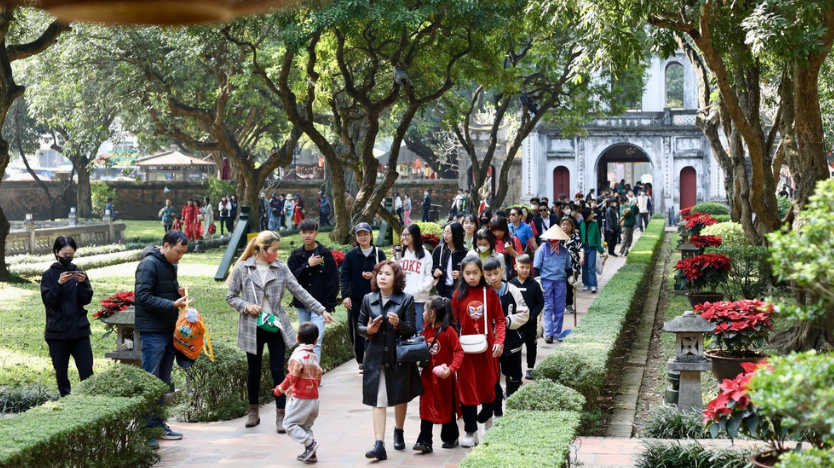 Văn Miếu- Quốc Tử Giám là địa điểm lý tưởng cho du xuân đầu năm mới. Ảnh: Báo Nhân Dân