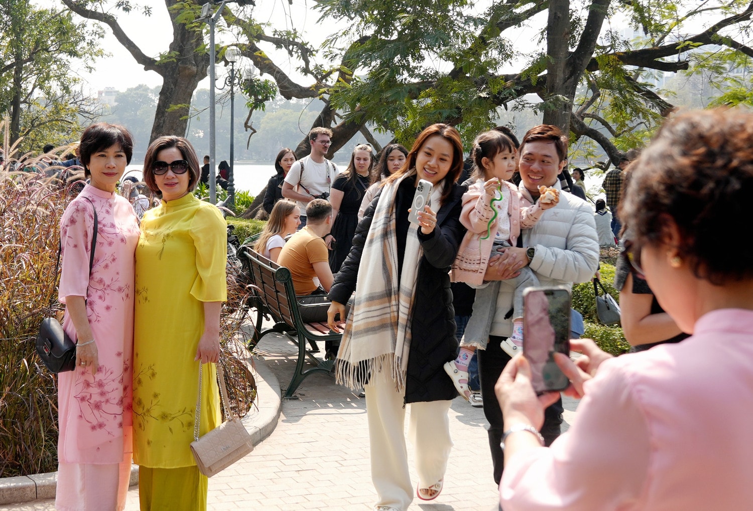 Du khách du xuân đầu năm mới tại Phố đi bộ hồ Gươm. Ảnh: tienphong
