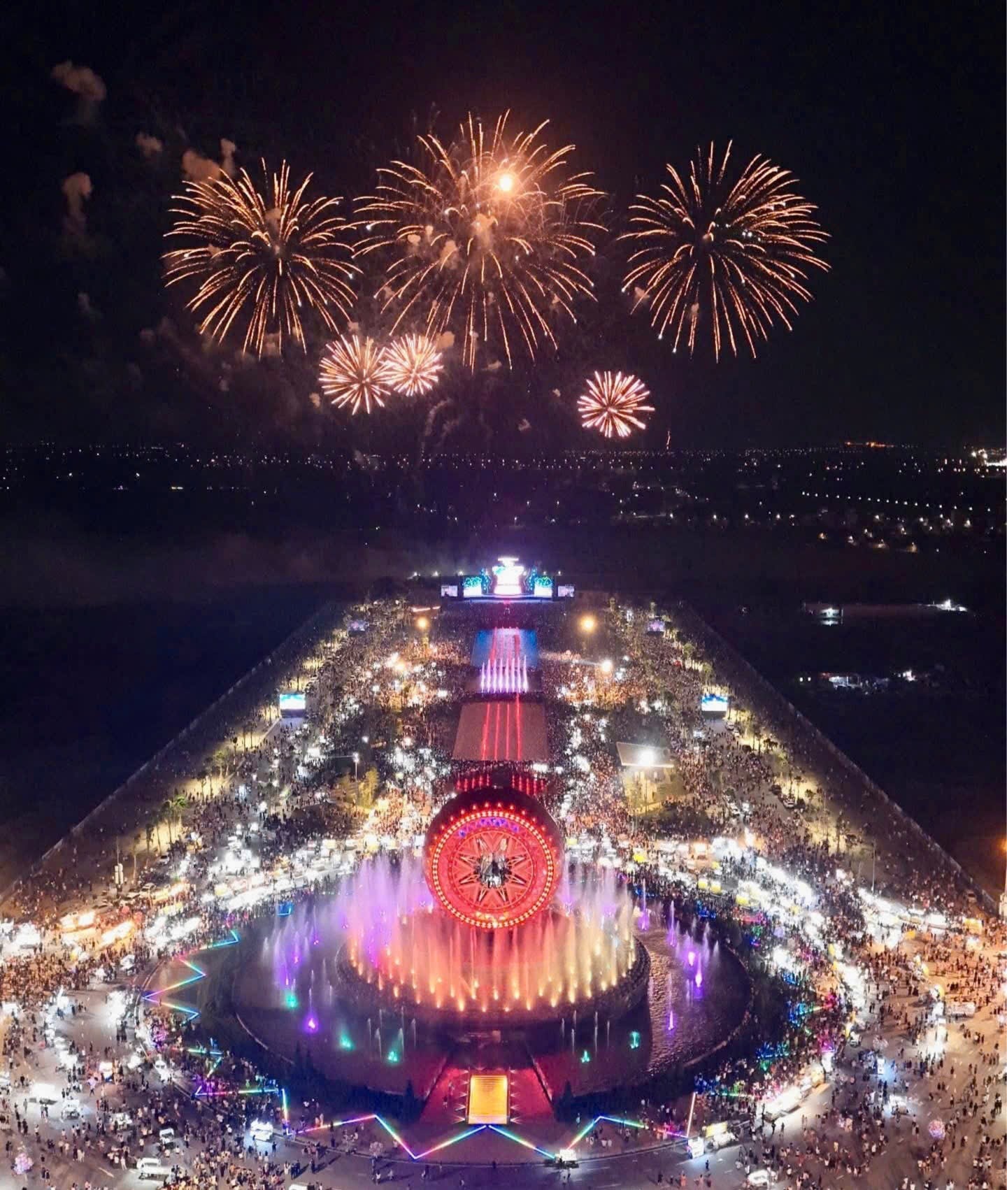 Đông đảo Nhân dân và du khách thưởng thức chương trình nghệ thuật và bắn pháo hoa chào năm mới 2026 tại Khu đô thị Sun Urban City (phường Hà Nam). Ảnh: Nguyễn Huy